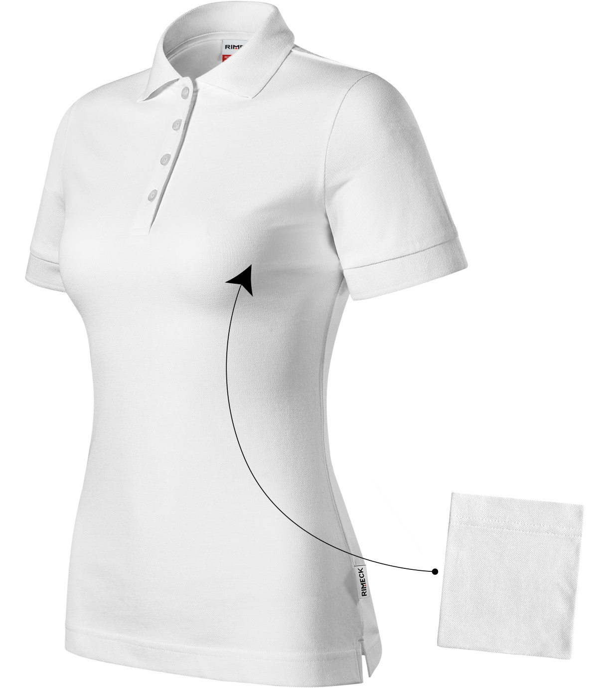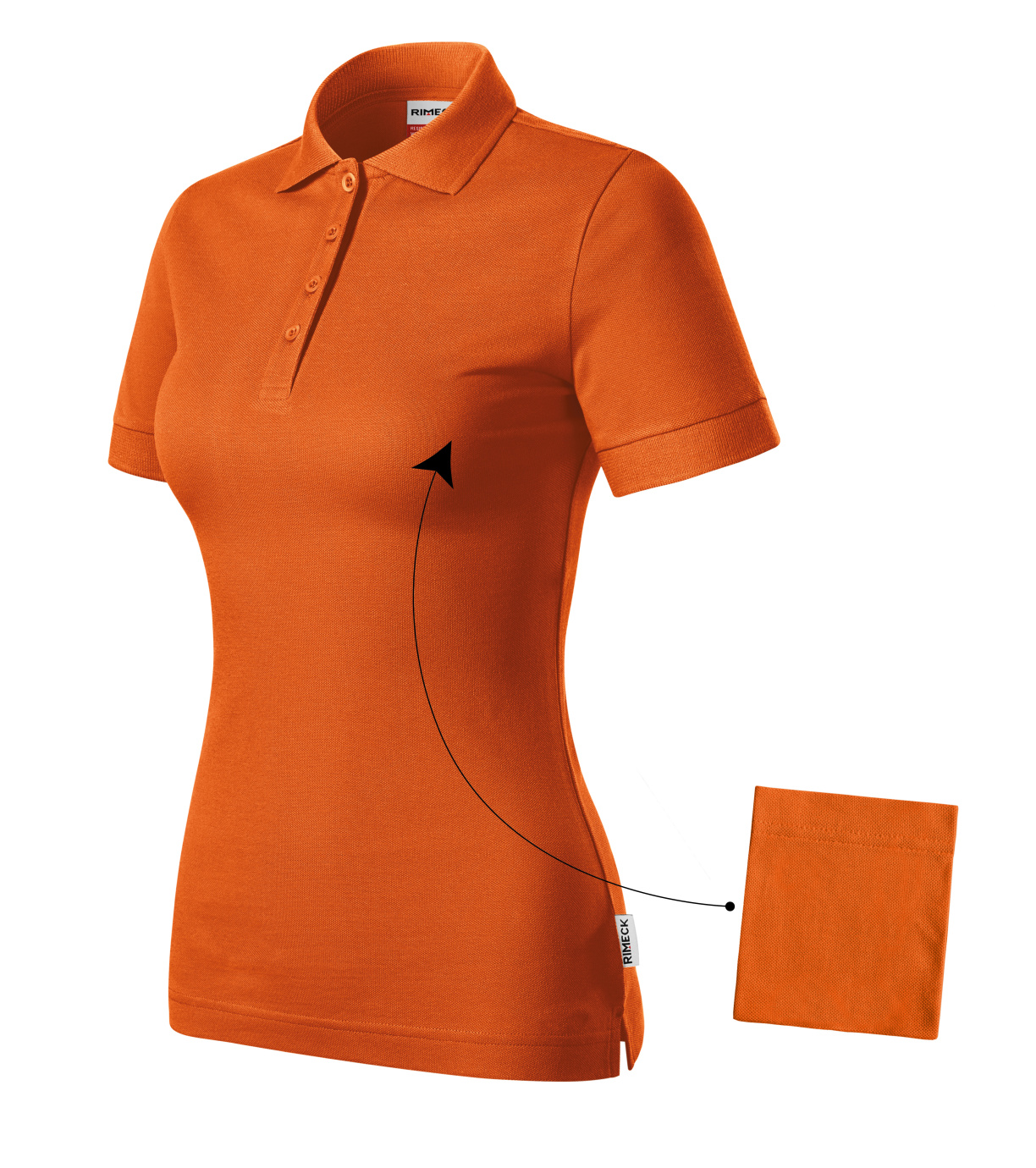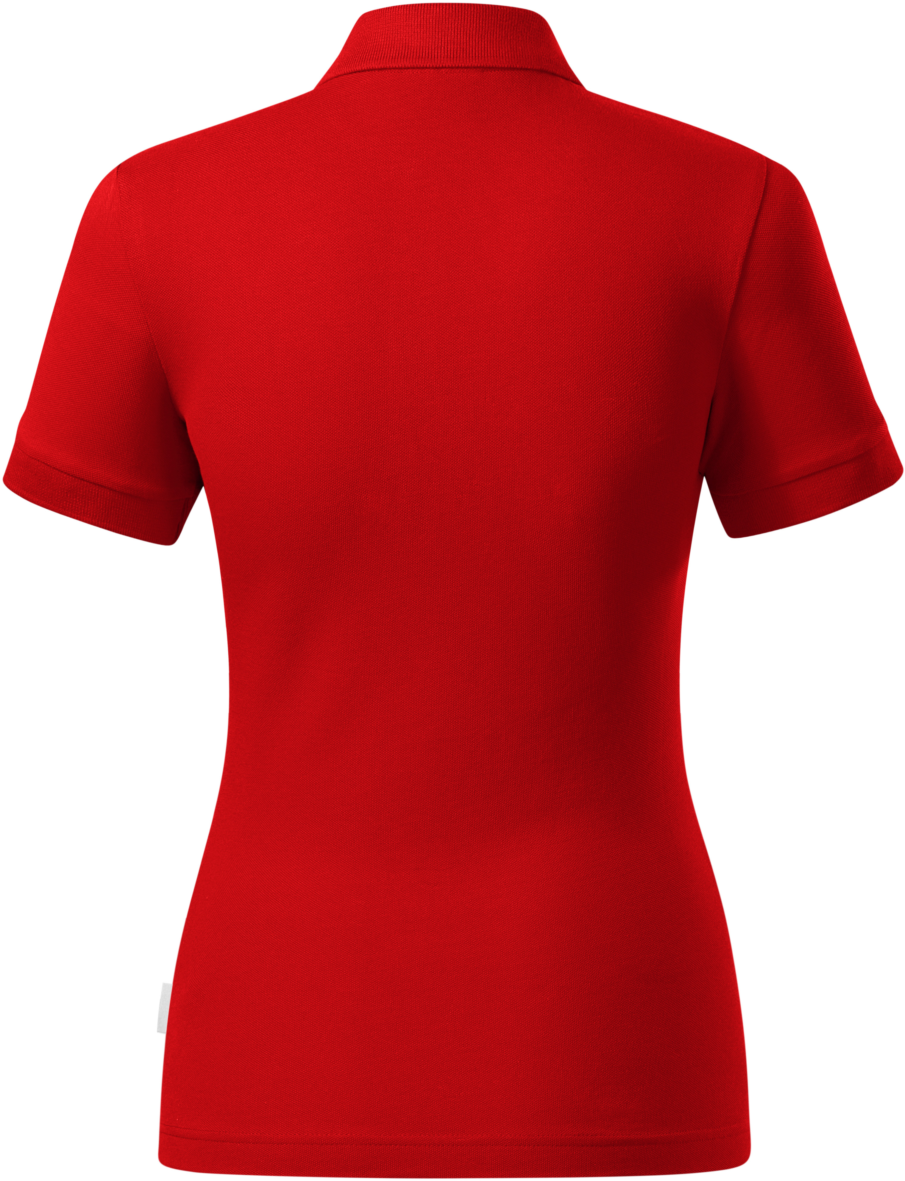 Koszulka polo damska, bawełna poddana procesowi wstępnego skurczenia, odporna na wysokie temperatury, można prać w temperaturze 95°C (biała) i 60°C (kolorowa), lekko dopasowany krój z rozcięciami w szwie bocznym, kołnierzyk i wykończenie rękawów dzianiną ściągaczową 1:1, wąska plisa z 4 guzikami w kolorze materiału, wewnętrzny dekolt wykończony taśmą wykonaną z materiału wierzchniego, szwy na ramionach wzmocnione taśmą, osobna kieszeń umożliwiająca łatwe znakowanie.