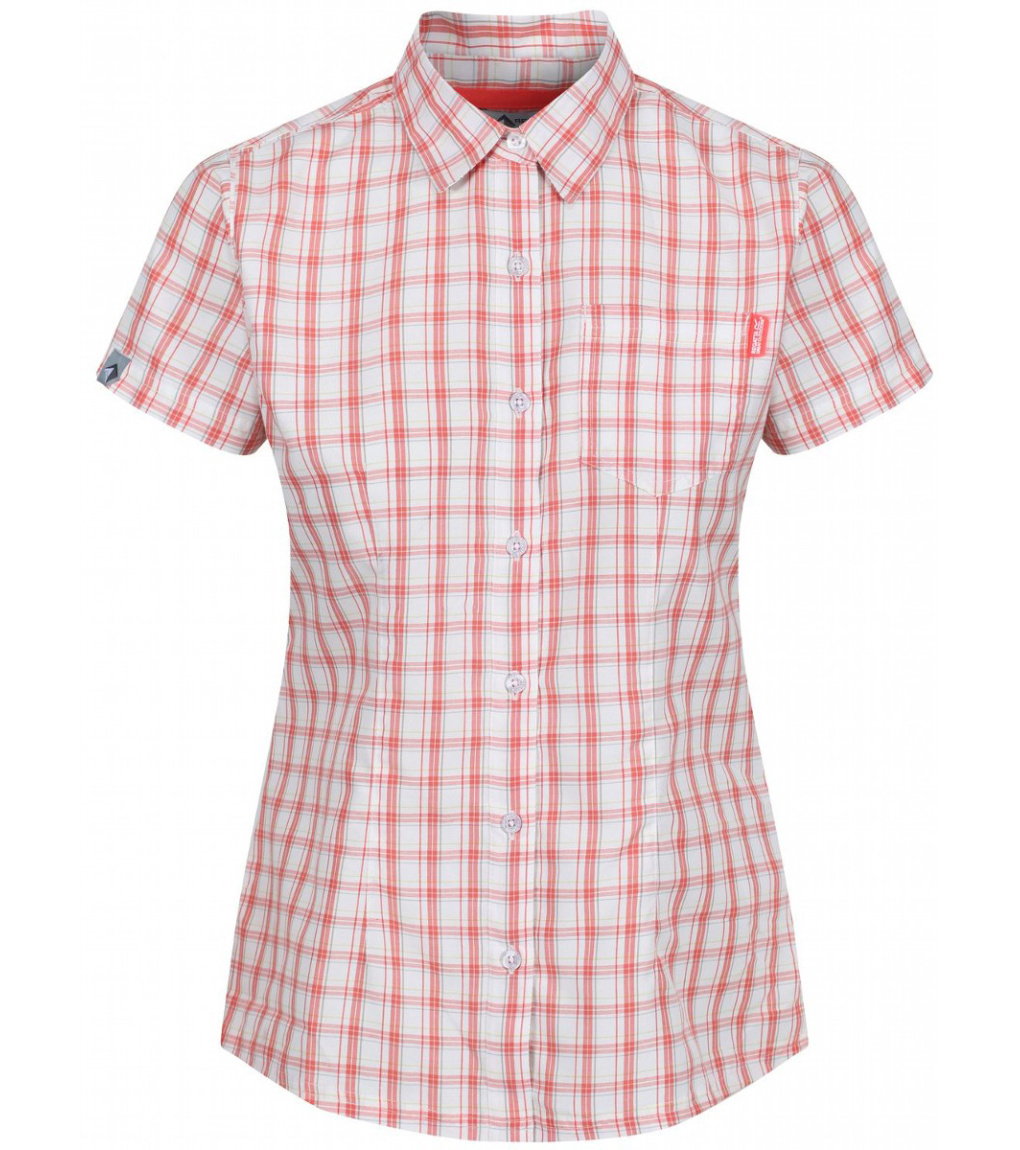 Koszula damska z krótkim rękawem Regatta Mindano III jest bardzo lekka, wykonana z materiału szybkoschnącego, ma kołnierzyk i zapięcie na guziki.