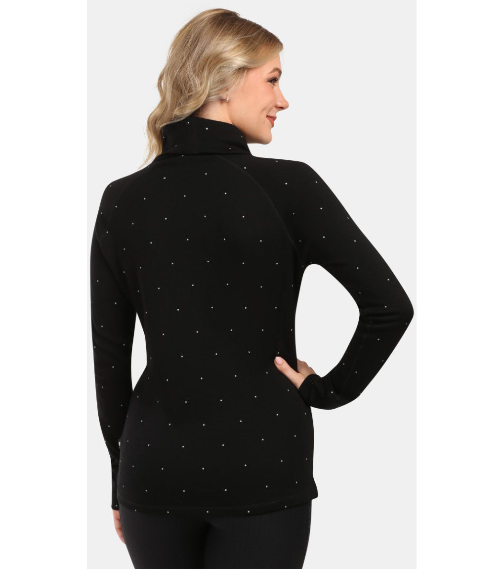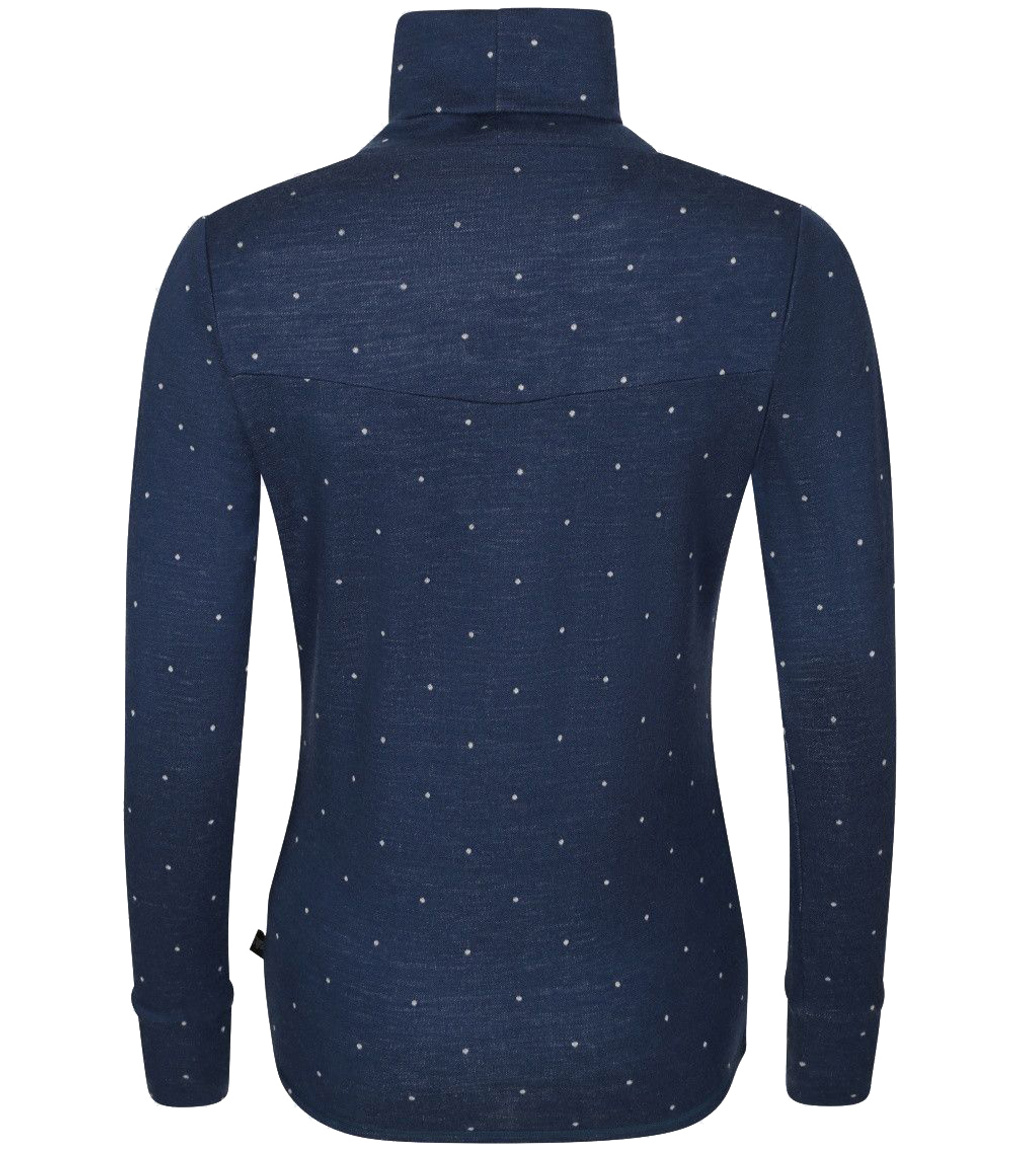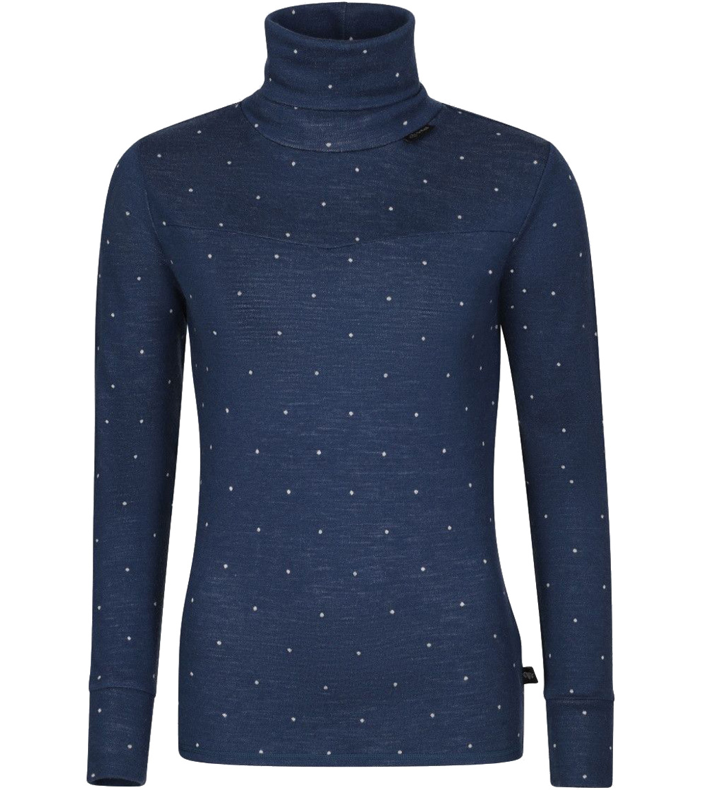 Zakochasz się w naszym stylowym damskim golfie Kilpi JANNU-W od pierwszego wejrzenia i dotyku! Wyselekcjonowana wełna merino ma doskonałe właściwości: pochłania wilgoć i odprowadza pot, zapewniając suchość i wygodę przez cały dzień. Delikatny wzór w groszki nadaje temu golfowi niepowtarzalny urok, który natychmiast stanie się sercem Twojej stylizacji. Luźniejszy krój idealnie sprawdzi się jako baza lub warstwa środkowa podczas przygód na świeżym powietrzu, czy to na nartach, pieszych wędrówkach, czy po prostu spacerze na łonie natury. Wysoki kołnierz i płaskie szwy zwiększają komfort i minimalizują ryzyko podrażnień skóry. Ciesz się zimą i rozgrzej się w naszym golfie Kilpi JANNU-W. Czarny czy niebieski? Bądź stylowa i gotowa na wszystkie przygody!