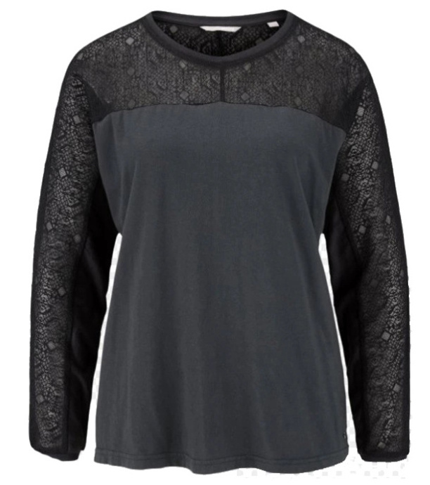 Damska koszulka z długim rękawem wykonana z przyjemnego materiału. Ozdobiona jest koronkowym wzorem.