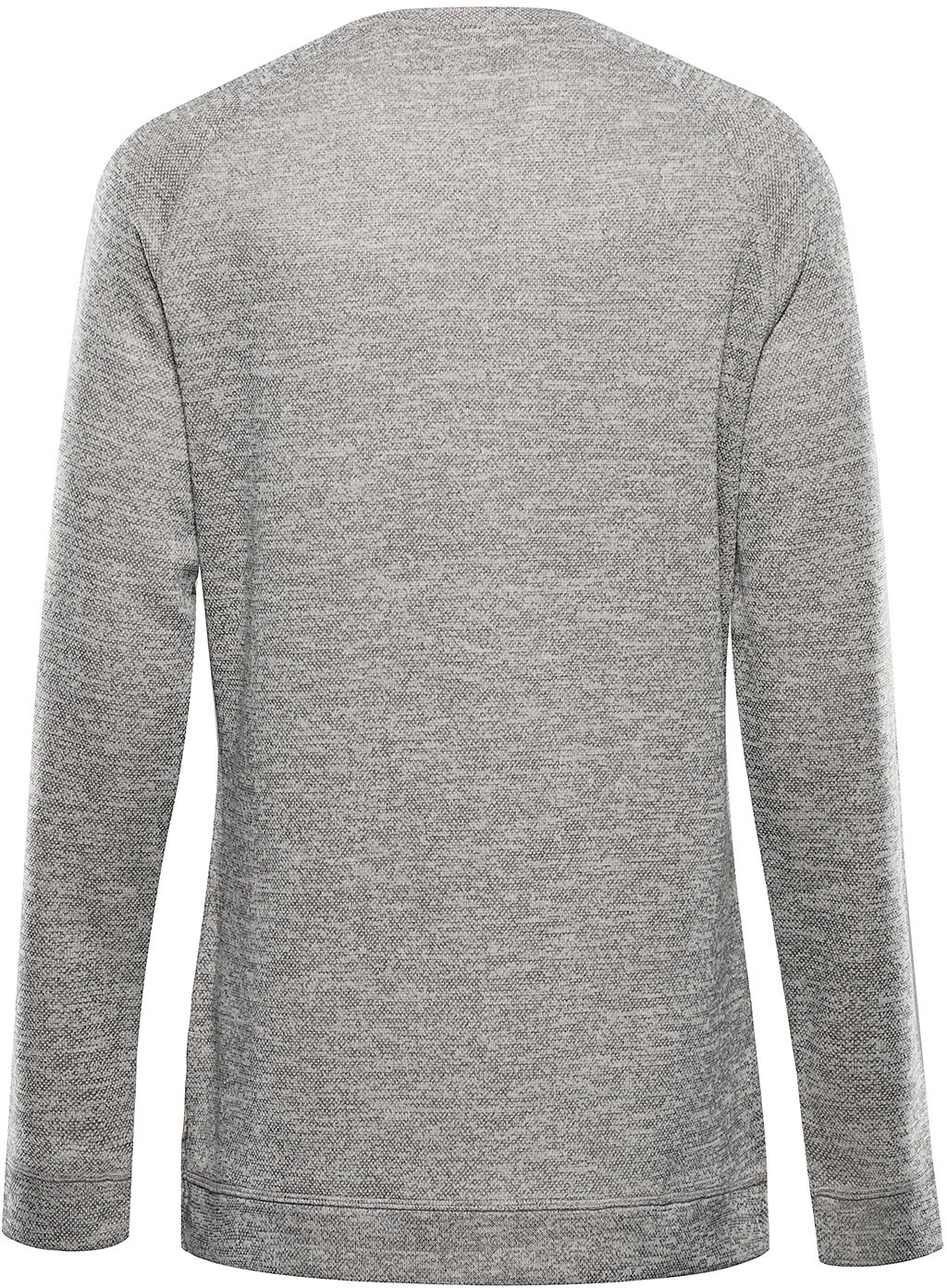 Damski T-shirt z długim rękawem wykonany jest w 100% z poliestru w nowoczesnym, melanżowym wzorze, który nadaje mu sportowo-elegancki wygląd. Pół-dopasowany krój podkreśla figurę i zapewnia komfort noszenia. Stylowym detalem są ozdobne przeszycia i subtelna naszywka z przodu, które podkreślają oryginalny design. Koszulka idealnie nadaje się do noszenia na co dzień.