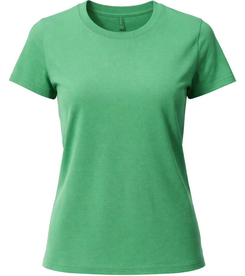 Damski T-shirt o dopasowanym kroju z głębokim, okrągłym dekoltem. Dekolt wykończony jest elastycznym ściągaczem (1,2 cm) z domieszką spandexu, który zapewnia lepsze dopasowanie. Koszulka ma krótkie, dopasowane rękawy, boczne szwy dla większego komfortu oraz podwójne szwy na ramionach. Wewnętrzna część kołnierza i ramiączka wykonane są z bawełny dla większego komfortu.