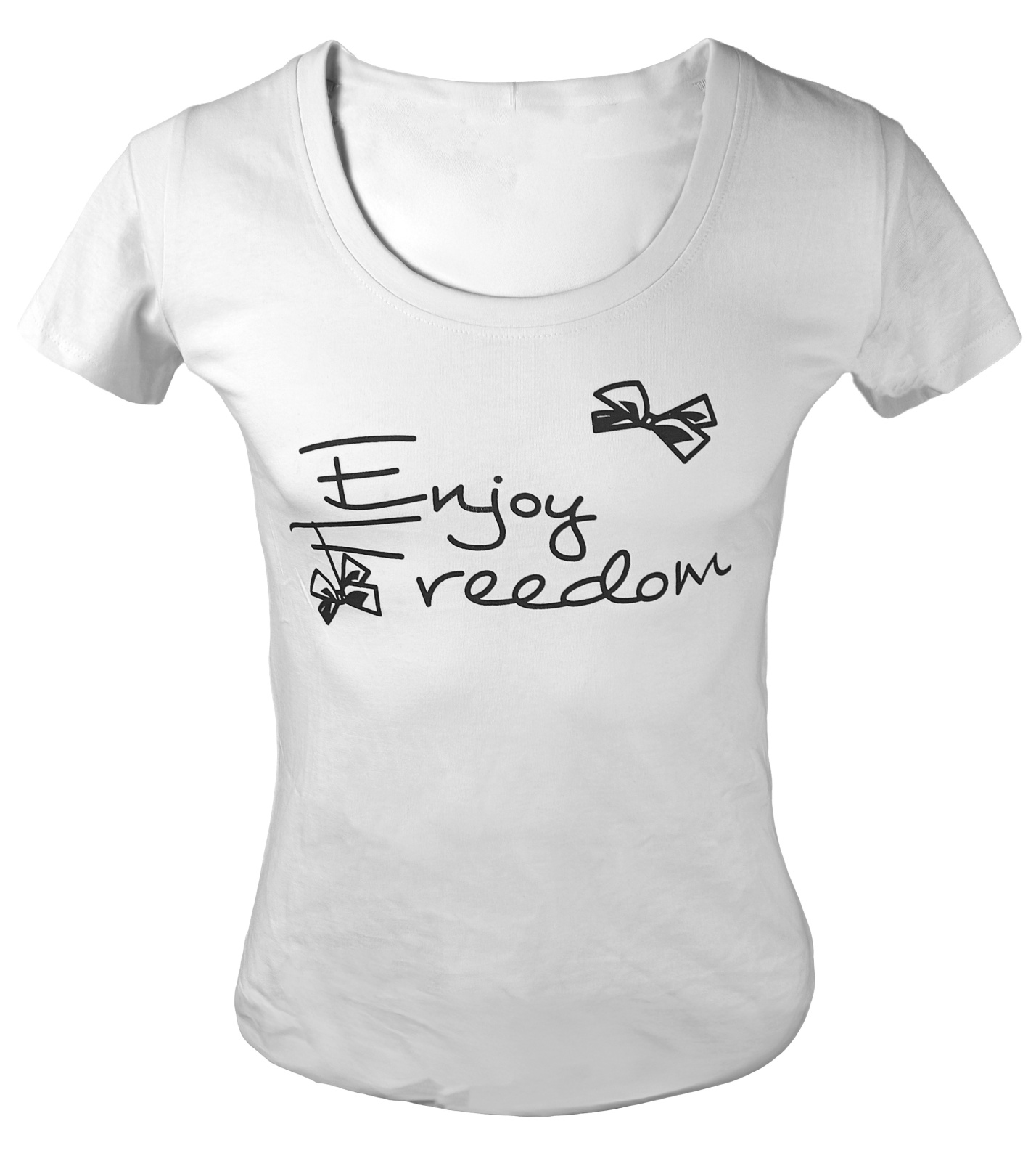 Damski T-shirt Enjoy to idealny wybór na letnie dni. Wykonany jest w 100% z bawełny, dzięki czemu jest przyjemny w dotyku, przewiewny i wygodny w noszeniu. Prosty krój z krótkimi rękawami i okrągłym dekoltem sprawia, że jest to uniwersalny model, który z łatwością można zestawić z jeansami, szortami lub spódnicą. Lekki materiał zapewnia przyjemne uczucie nawet w upalne dni.