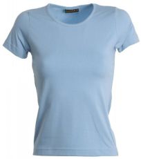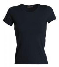 Damska, dopasowana koszulka z krótkimi rękawami, okrągłym dekoltem i delikatnym wykończeniem.