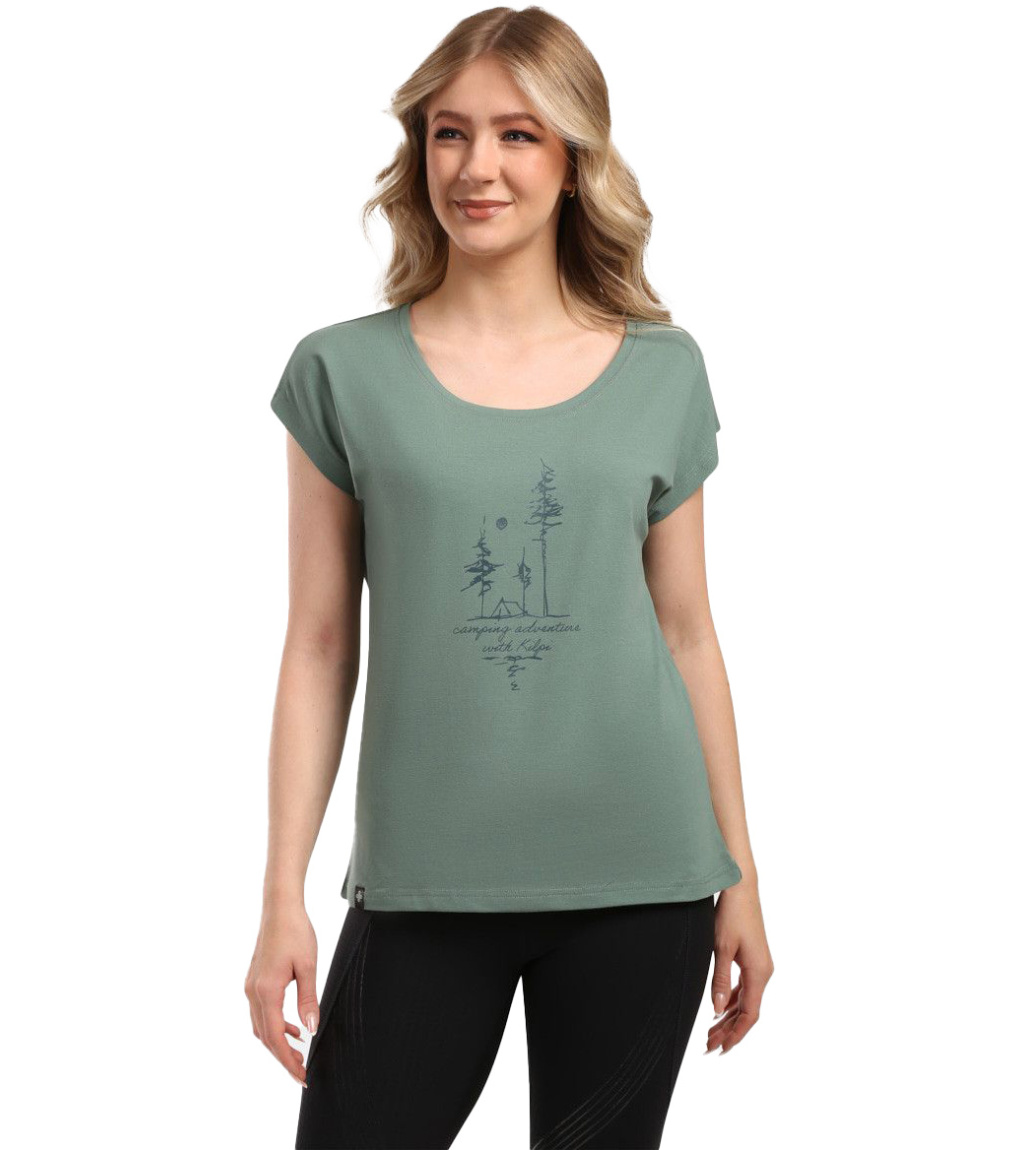 Damska luźniejsza koszulka. Wykonana z wygodnej elastycznej dzianiny bawełnianej. Luźniejszy, przewiewny krój z krótkimi rękawami typu nietoperz i okrągłym dekoltem. Idealna do noszenia na co dzień lub do aktywności rekreacyjnych. Koszulka Kilpi ROANE-W dzięki swojemu krojowi pasuje do każdej sylwetki.