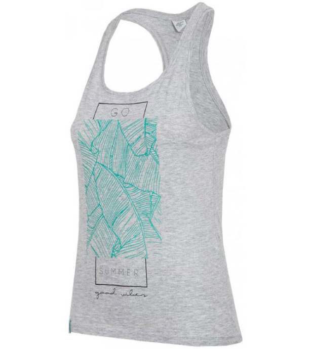 Damski top na ramiączkach 4F jest bardzo elastyczny i giętki. Miękki i przyjemny w dotyku. Z nadrukiem z przodu.
