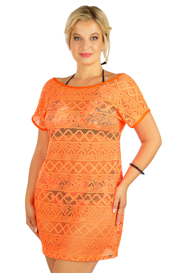 Damska tunika plażowa. Z tyłu głęboki dekolt w kształcie litery V. Opuszczony rękaw. Luźny krój. Długość tuniki to ok. 80 cm.