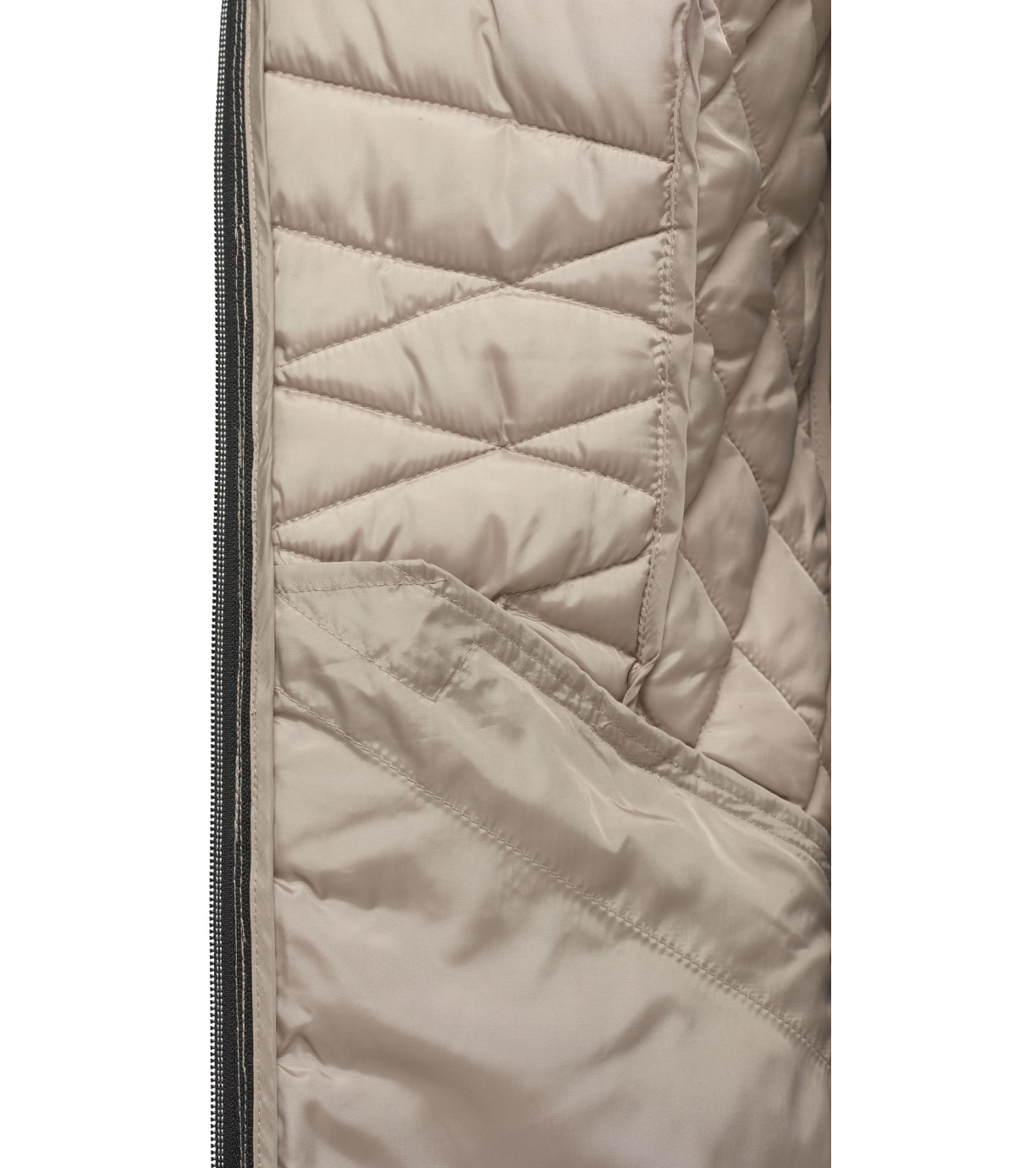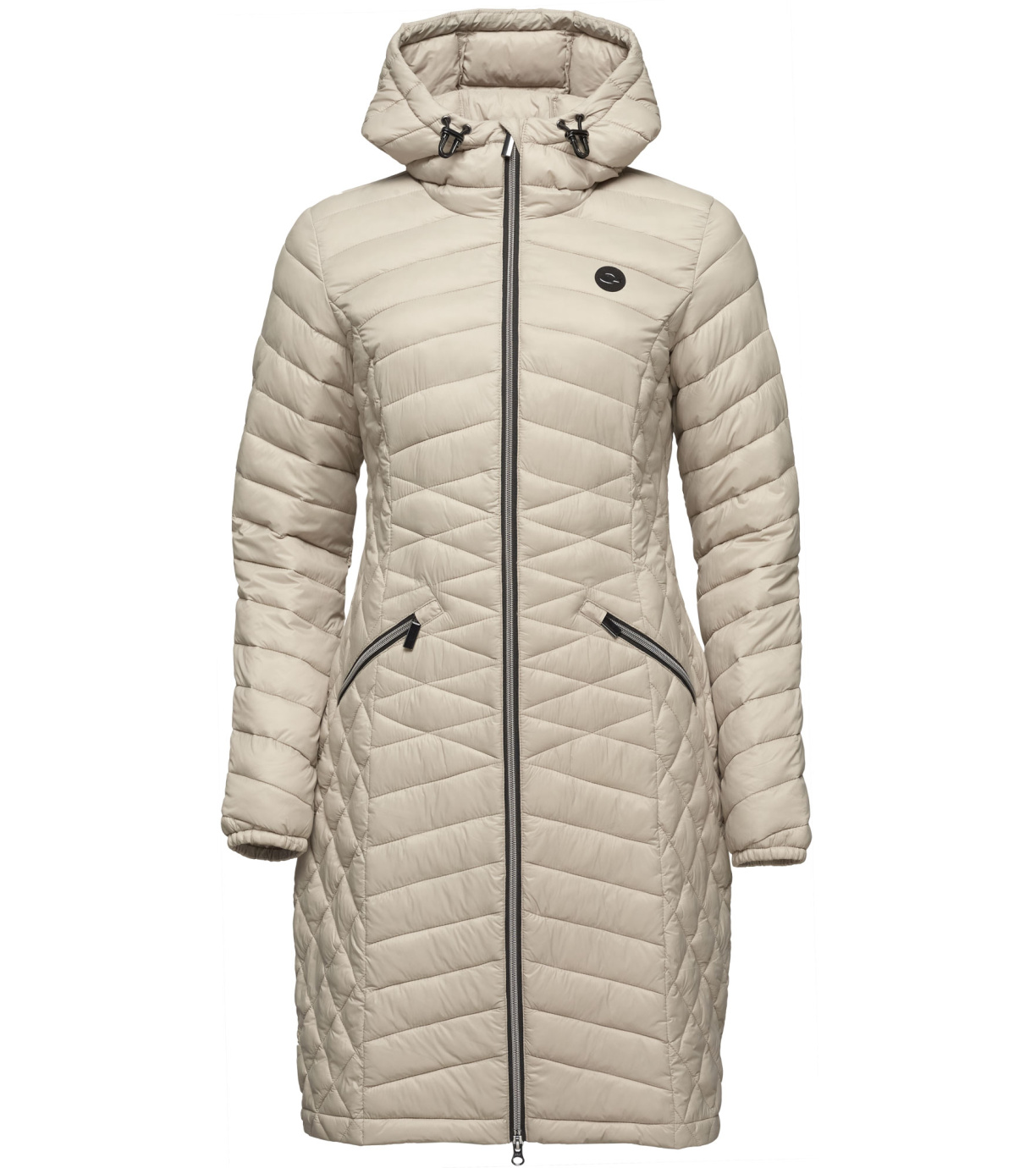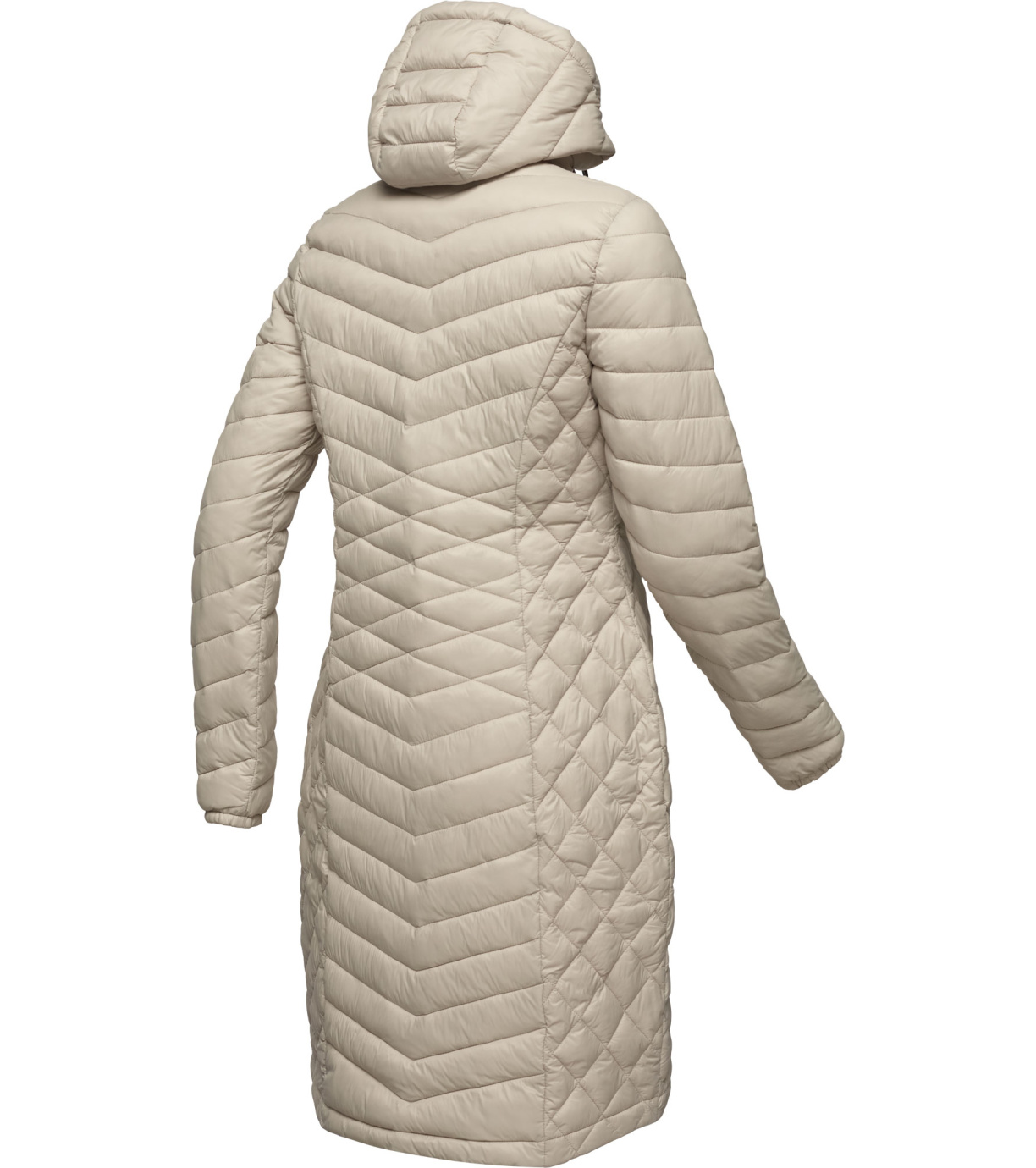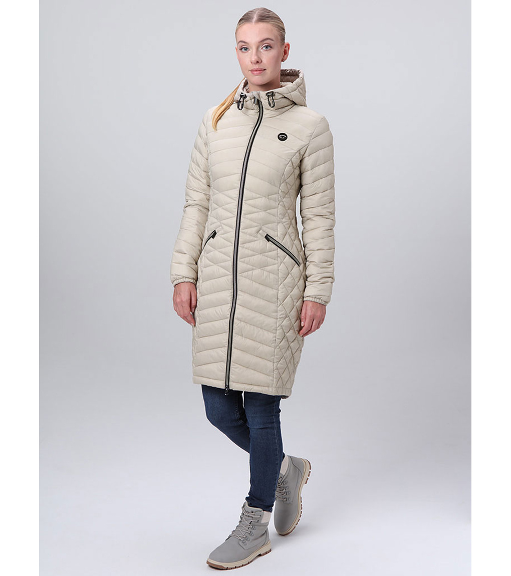 Płaszcz damski Loap JEMINA to świetny wybór do miasta lub na spacer. Niezawodnie ogrzewa i wytrzymuje niespodziewane opady deszczu. Komfort cieplny gwarantuje wypełnienie izolacyjne z włókien POLYTHERM, które dodatkowo doskonale zapamiętuje kształt, dzięki czemu płaszcz pięknie dopasowuje się do Ciebie. Wydłużona długość i miękka wyściółka również zapewniają ciepło i wygodę. Na mroźne dni materiał wierzchni został wyposażony we wzmacniający materiał STORMEX i wodoodporną powłokę DryTech, przyda się również zintegrowany, regulowany kaptur. Płaszcz jest całkowicie rozpinany, dolny brzeg nie ma ściągacza, rękawy mają wewnętrzne elastyczne ściąganie. Elegancki, nowoczesny wygląd podkreśla zamek z metalicznym efektem oraz dwie kieszenie po bokach.