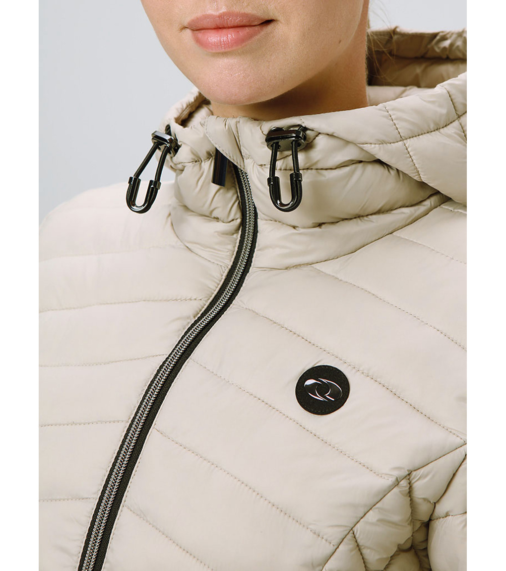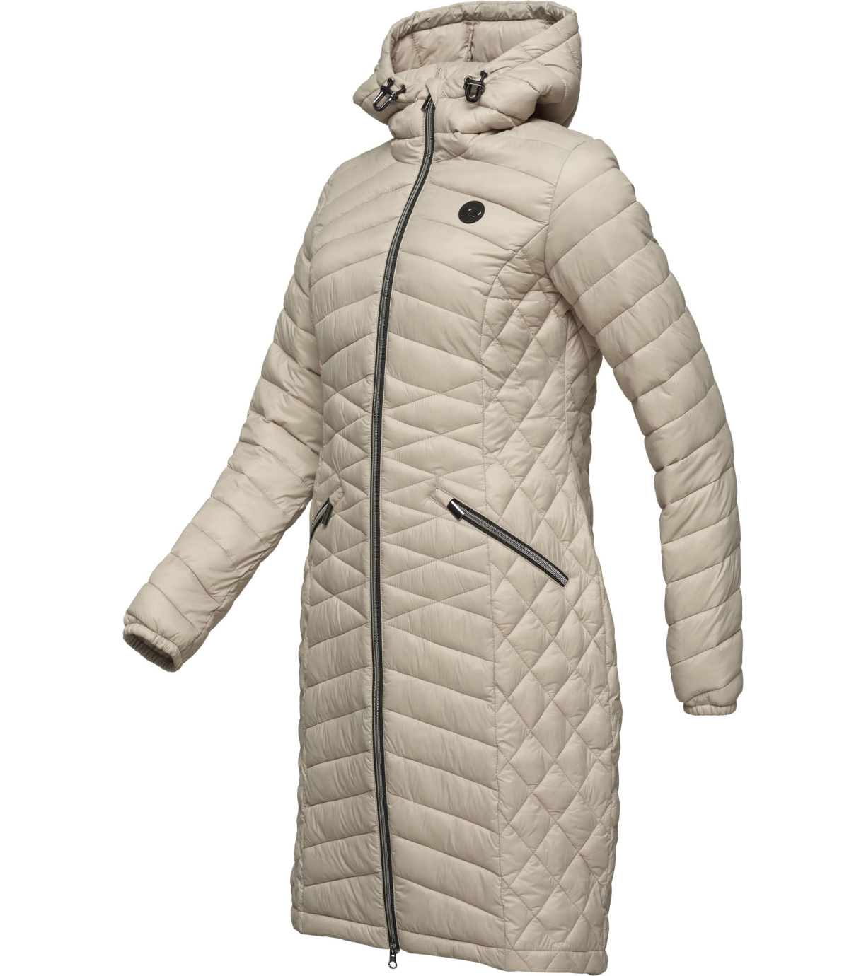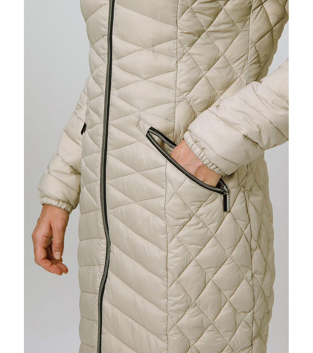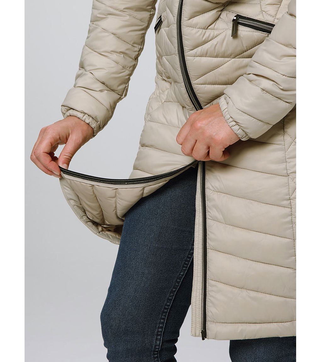 Płaszcz damski Loap JEMINA to świetny wybór do miasta lub na spacer. Niezawodnie ogrzewa i wytrzymuje niespodziewane opady deszczu. Komfort cieplny gwarantuje wypełnienie izolacyjne z włókien POLYTHERM, które dodatkowo doskonale zapamiętuje kształt, dzięki czemu płaszcz pięknie dopasowuje się do Ciebie. Wydłużona długość i miękka wyściółka również zapewniają ciepło i wygodę. Na mroźne dni materiał wierzchni został wyposażony we wzmacniający materiał STORMEX i wodoodporną powłokę DryTech, przyda się również zintegrowany, regulowany kaptur. Płaszcz jest całkowicie rozpinany, dolny brzeg nie ma ściągacza, rękawy mają wewnętrzne elastyczne ściąganie. Elegancki, nowoczesny wygląd podkreśla zamek z metalicznym efektem oraz dwie kieszenie po bokach.