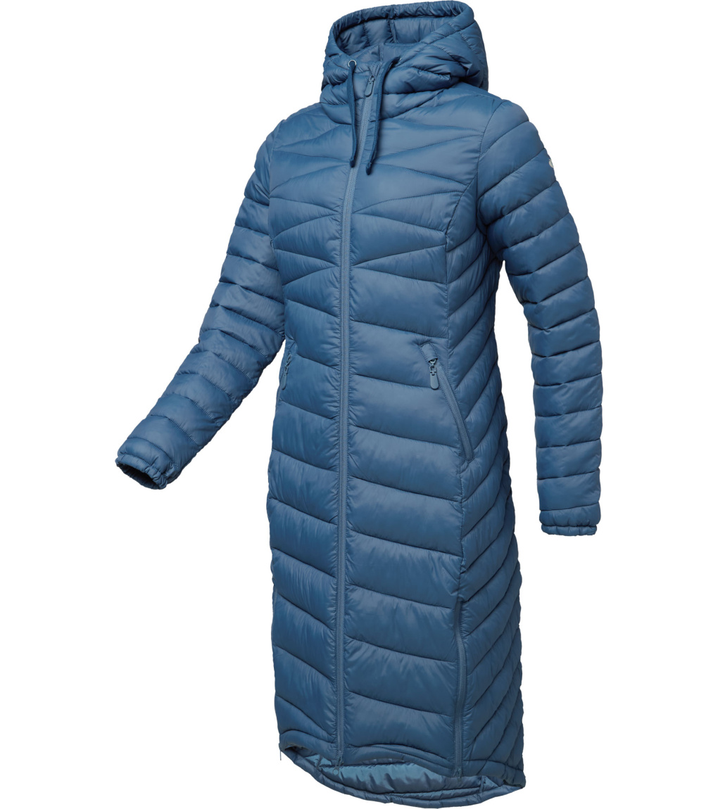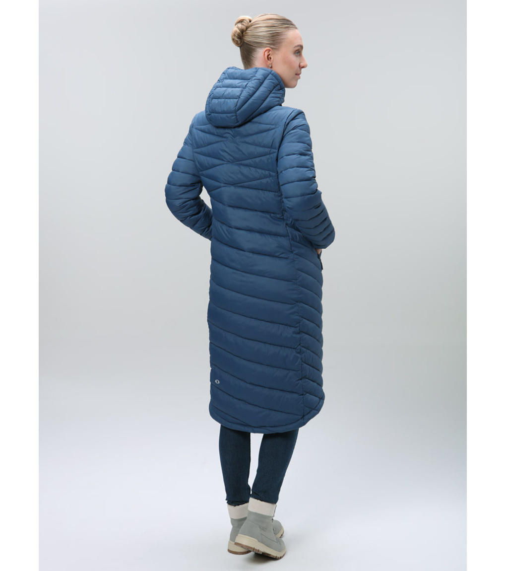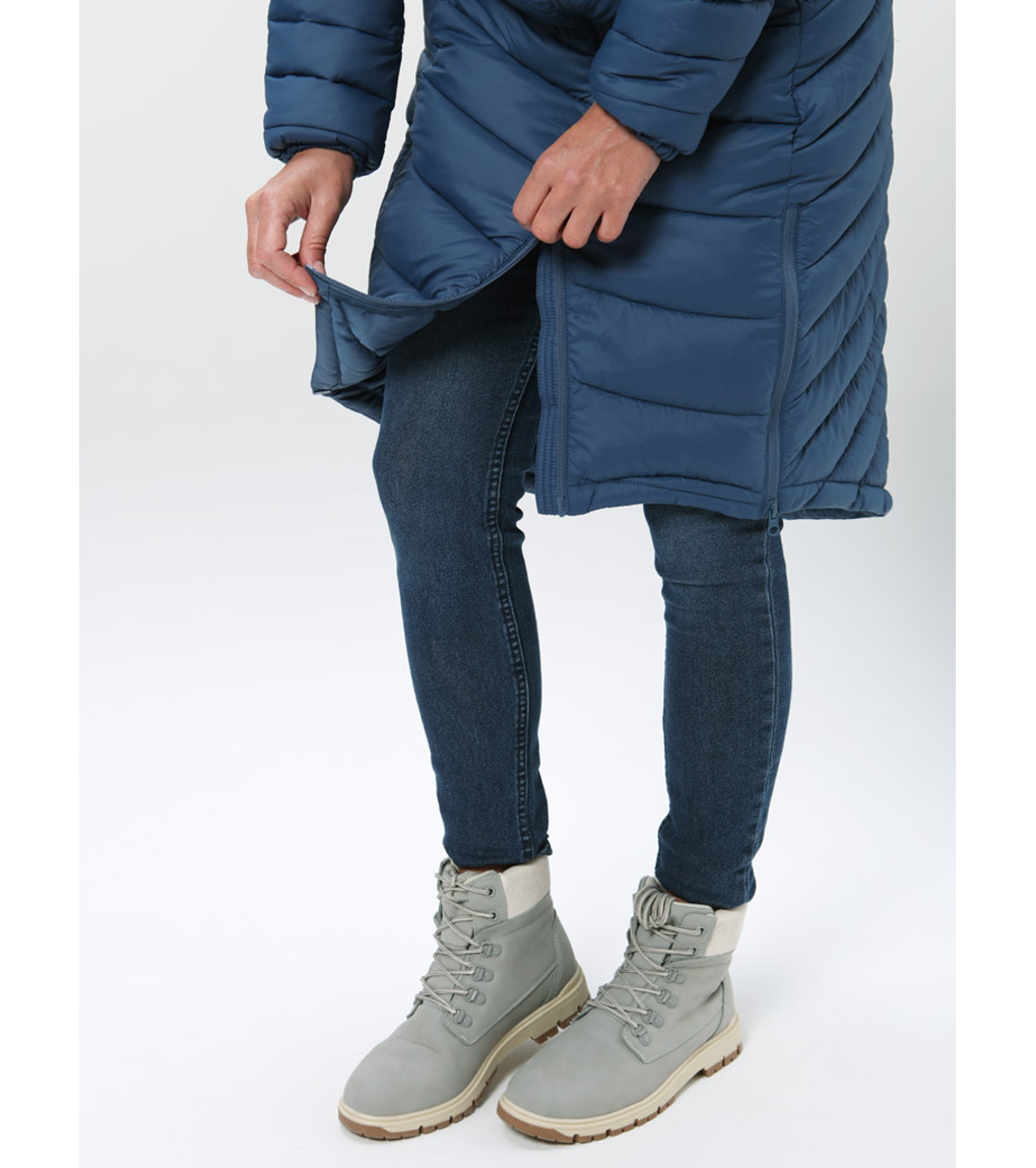 Stylowy damski płaszcz na chłodne dni oferuje idealne połączenie ciepła, wygody i miejskiej elegancji. Klasyczny krój z przedłużonym tyłem podkreśla sylwetkę, a jednocześnie zapewnia lepsze krycie i ochronę przed zimnem. Wykonany z materiałów pochodzących z recyklingu, przypadnie do gustu również osobom dbającym o zrównoważony rozwój. Ciepło zapewnia lekkie wypełnienie z włókien POLYTHERM, które utrzymuje ciepło. Materiał wierzchni pokryto hydrofobową powłoką DRYTECH, dzięki czemu płaszcz jest odporny na lekki deszcz i śnieg. Zintegorwany kaptur z regulacją chroni przed wiatrem, a wewnętrzne elastyczne mankiety pomagają utrzymać ciepło i zapobiegają przewiewaniu. Dwustronny zamek błyskawiczny z tyłu ułatwia wentylację i swobodę ruchów, na przykład podczas siedzenia lub wchodzenia po schodach. Dwie zewnętrzne kieszenie pomieszczą niezbędne drobiazgi i ogrzeją dłonie. Ten płaszcz to idealny wybór na co dzień – od porannej drogi do pracy po wieczorny spacer po mieście. Wygląda świetnie i działa dokładnie tak, jak powinien.