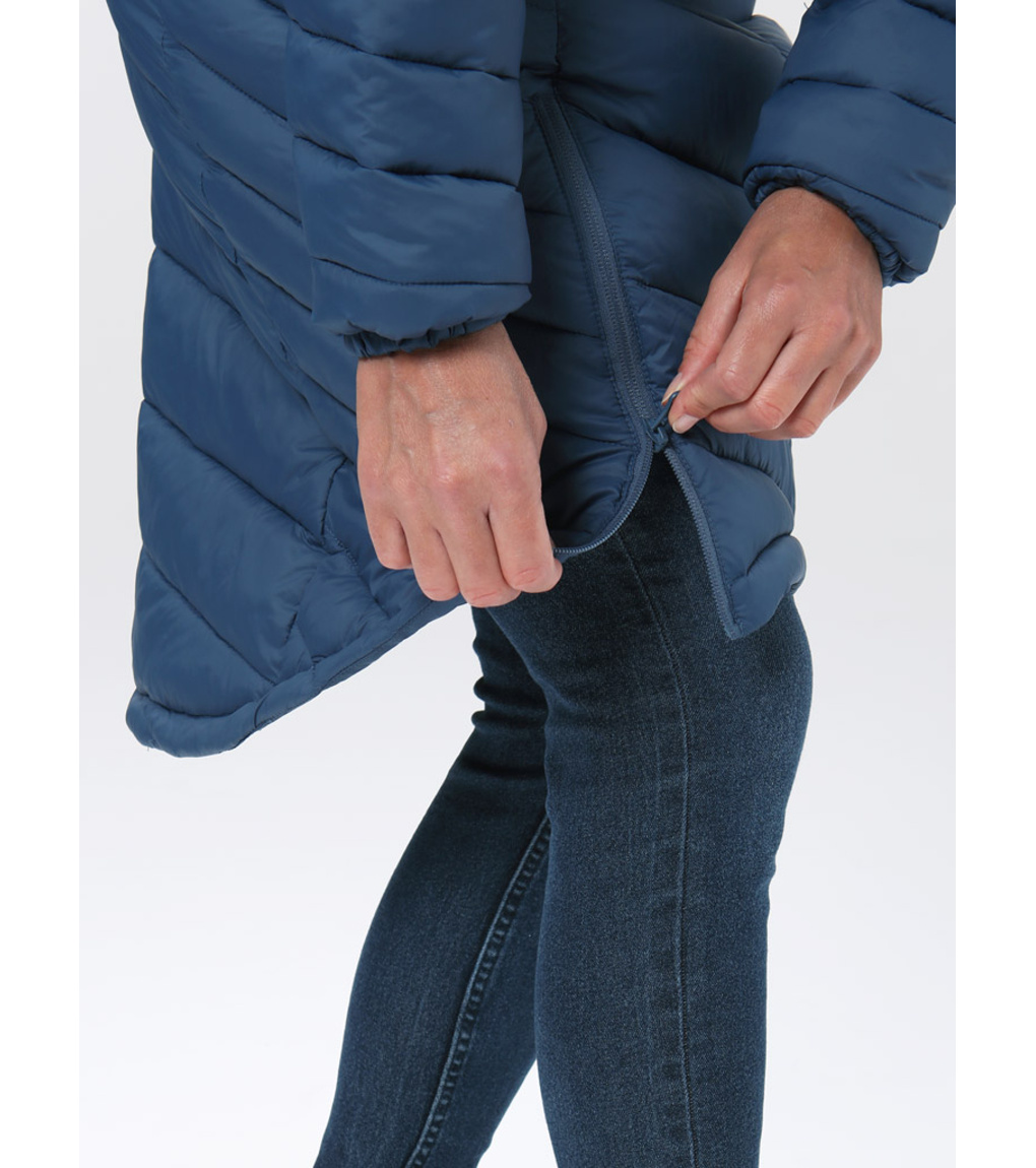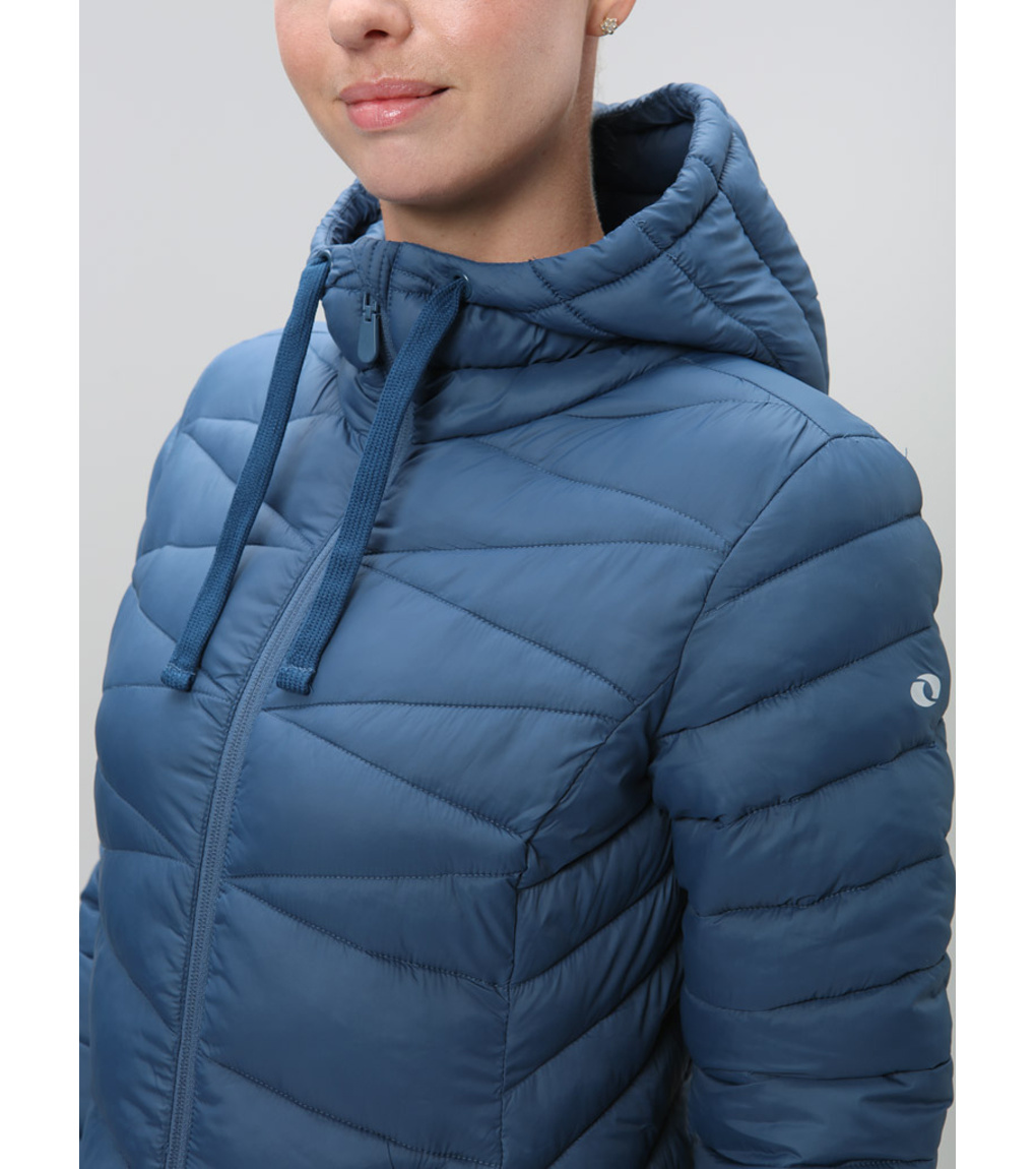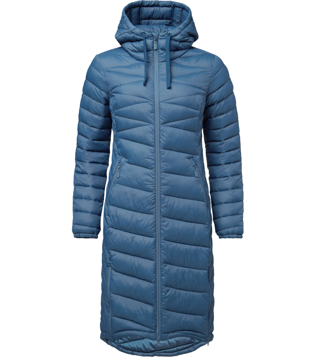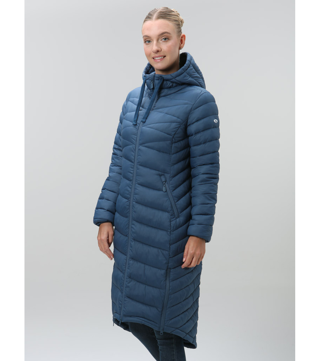 Stylowy damski płaszcz na chłodne dni oferuje idealne połączenie ciepła, wygody i miejskiej elegancji. Klasyczny krój z przedłużonym tyłem podkreśla sylwetkę, a jednocześnie zapewnia lepsze krycie i ochronę przed zimnem. Wykonany z materiałów pochodzących z recyklingu, przypadnie do gustu również osobom dbającym o zrównoważony rozwój. Ciepło zapewnia lekkie wypełnienie z włókien POLYTHERM, które utrzymuje ciepło. Materiał wierzchni pokryto hydrofobową powłoką DRYTECH, dzięki czemu płaszcz jest odporny na lekki deszcz i śnieg. Zintegorwany kaptur z regulacją chroni przed wiatrem, a wewnętrzne elastyczne mankiety pomagają utrzymać ciepło i zapobiegają przewiewaniu. Dwustronny zamek błyskawiczny z tyłu ułatwia wentylację i swobodę ruchów, na przykład podczas siedzenia lub wchodzenia po schodach. Dwie zewnętrzne kieszenie pomieszczą niezbędne drobiazgi i ogrzeją dłonie. Ten płaszcz to idealny wybór na co dzień – od porannej drogi do pracy po wieczorny spacer po mieście. Wygląda świetnie i działa dokładnie tak, jak powinien.