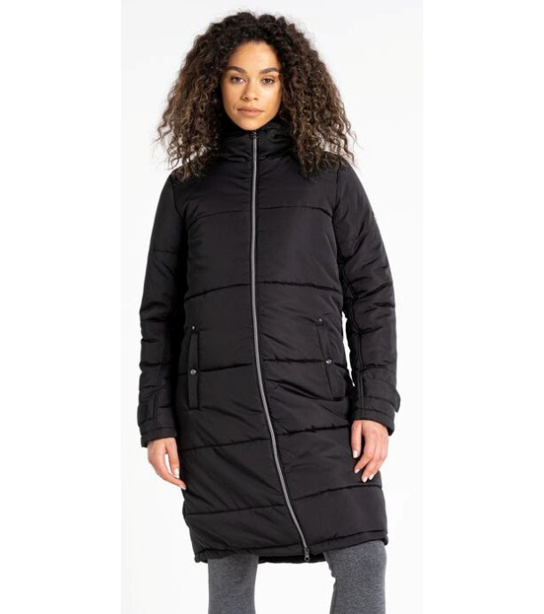 Damski płaszcz Dare2b REPUTABLE został wykonany z lekkiego, wodoodpornego i oddychającego materiału Ared 5000. Płaszcz ma fason parki, odpowiedni na zimowe spacery po mieście, a błyszcząca powierzchnia jest przyjemna dla oka, dodając połysku całemu modelowi. Z przodu znajdują się dwie główne kieszenie. Wypełnienie wewnętrzne wykonane jest z poliestru, który charakteryzuje się dobrą izolacją termiczną, lekkością i łatwością utrzymania. Idealny model na miejskie przygody. Płaszcz zapinany jest na metalowy dwukierunkowy zamek błyskawiczny z metalowymi uchwytami ozdobionymi kryształami Swarovskiego.