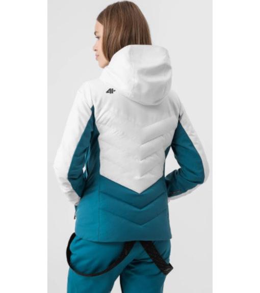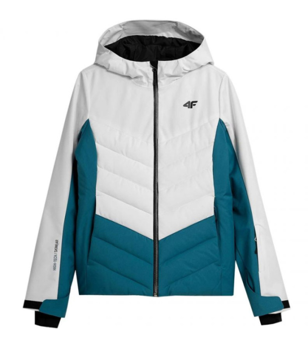 Damska kurtka narciarska z kapturem wyposażona w wodoodporną i oddychającą membranę NeoDry 10000/8000 zapewniającą ochronę przed ulewnym deszczem lub śniegiem podczas zimowych aktywności. Materiał wierzchni zabezpieczony jest powłoką teflonową, która zapewnia miękkość i zwiększoną ochronę przed zabrudzeniami. Poliestrowe ocieplenie i pikowane panele zapewniają komfort termiczny w chłodniejsze dni. System wentylacji pod pachami z zamkiem błyskawicznym. Przedłużone elastyczne mankiety z otworami na kciuki zapewniają dodatkową ochronę. Wodoodporny zamek główny zabezpieczony wewnętrzną listwą chroniącą przed wiatrem. 3 wewnętrzne kieszenie zapinane na zamek, 2 ocieplane kieszenie boczne + 1 karnet narciarski na lewym rękawie. Mankiety zapinane na rzep. Dolną część kurtki można regulować za pomocą ściągacza w tunelu ze stoperem. Zintegrowany antypoślizgowy pas śnieżny z zatrzaskami chroni przed wnikaniem śniegu i zimna do wnętrza kurtki.