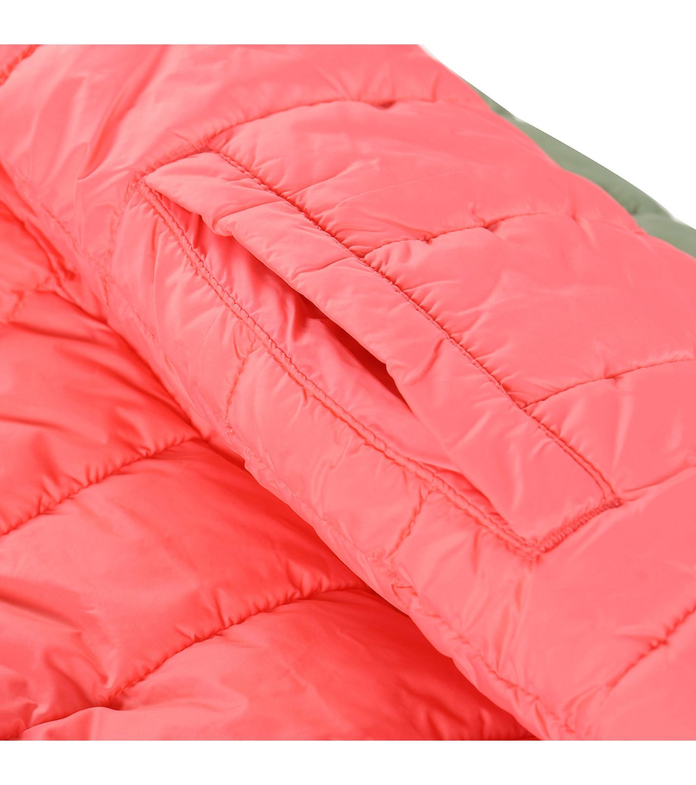 Krój jest pół-dopasowany, co podkreśla kobiecą sylwetkę, jednocześnie zapewniając swobodę ruchów. Nieodpinany kaptur chroni przed wiatrem i deszczem, a praktyczne kieszenie (łącznie cztery) pozwalają na przechowywanie drobiazgów. Fason PUFFY podkreśla obszerny i elegancki wygląd. Dzięki dwustronnemu krojowi kurtkę można nosić na dwa sposoby – z dyskretną stroną wierzchnią z nadrukiem z przodu lub z oryginalną, kontrastową podszewką, która staje się dominującym elementem stylizacji.