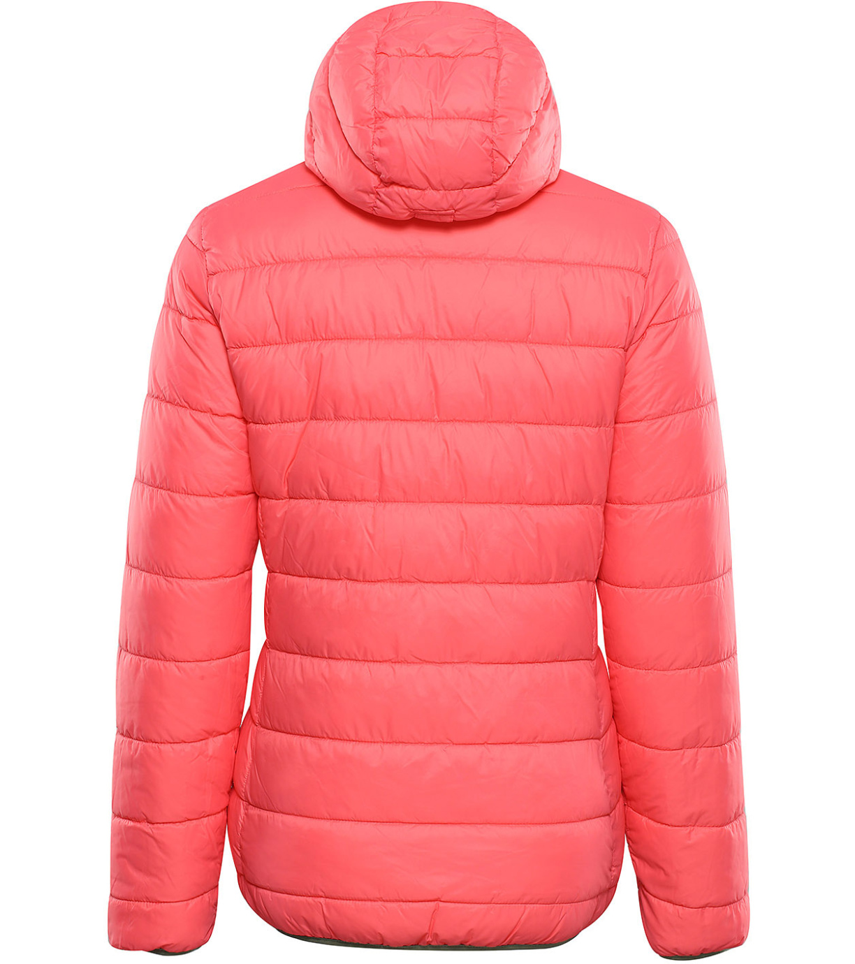 Dwustronna kurtka damska to nowoczesny i praktyczny model, który łączy styl i funkcjonalność. Wykonana jest w 100% z nylonu z hydrofobowym i wiatroszczelnym wykończeniem, dzięki czemu zapewnia niezawodną ochronę w zmiennych warunkach pogodowych. Ultralekki materiał z powłoką Teflon EcoElite™ gwarantuje komfort noszenia i łatwość pielęgnacji. Kurtka wypełniona jest grubym wypełnieniem, które doskonale izoluje i zatrzymuje ciepło, a kontrastowa, drukowana podszewka dodaje całości wyrazistego, modowego akcentu.