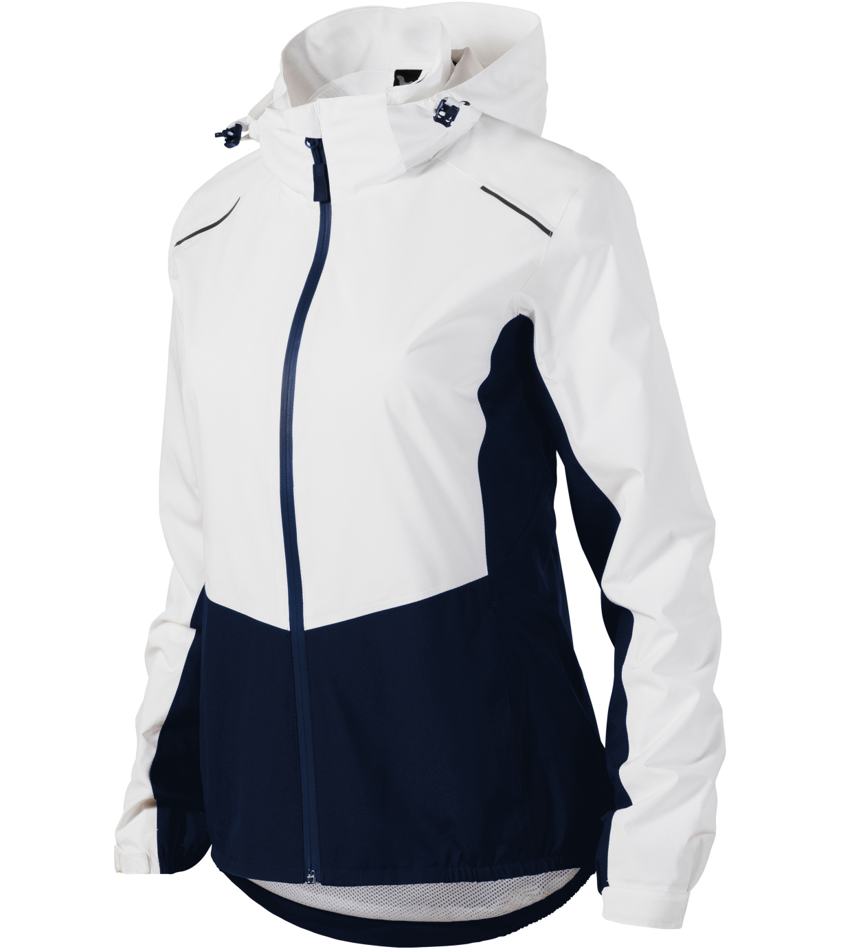 Damska kurtka outdoorowa, lekka, wodoodporna, z membraną, wykończenie BIONIC FINISH® ECO zapobiegające przenikaniu wody, dopasowany krój z panelami bocznymi, wodoodporny zamek błyskawiczny z osłoną podbródka, odpinany kaptur ze ściągaczem, regulowane rzepem mankiety, kieszenie boczne zapinane na odwrócony spiralny zamek błyskawiczny, wewnętrzna kieszeń na piersi zapinana na rzep, klejone szwy, otwór na logo w bocznym szwie podszewki, wyprofilowany i lekko przedłużony tył, dolna krawędź ściągana gumką z boku, wentylacja z tyłu, elementy odblaskowe.
