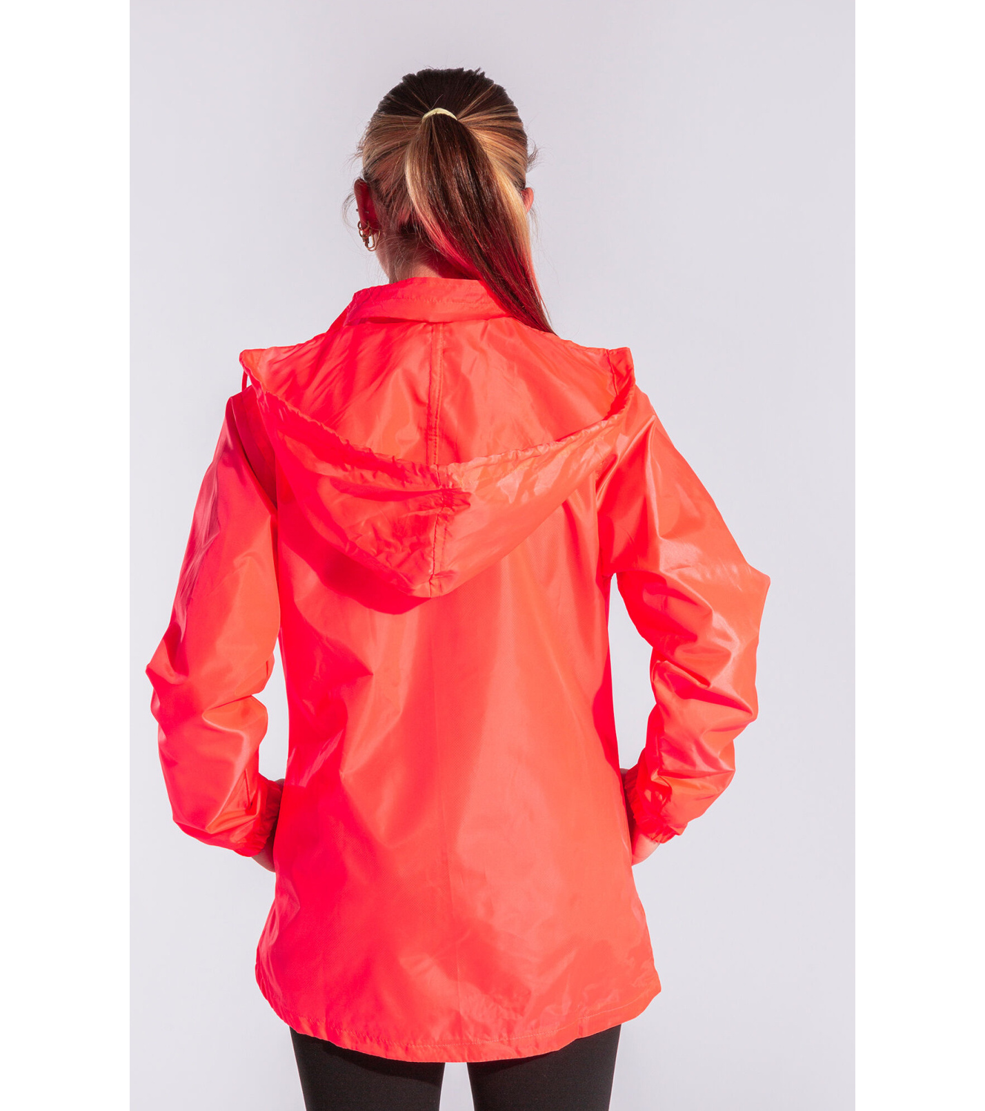 Damska wiatrówka z kapturem, zapinanym na zamek kołnierzem i bocznymi kieszeniami zapinanymi na zamek. Odporna na wiatr i lekki deszcz. Klasyczny krój.