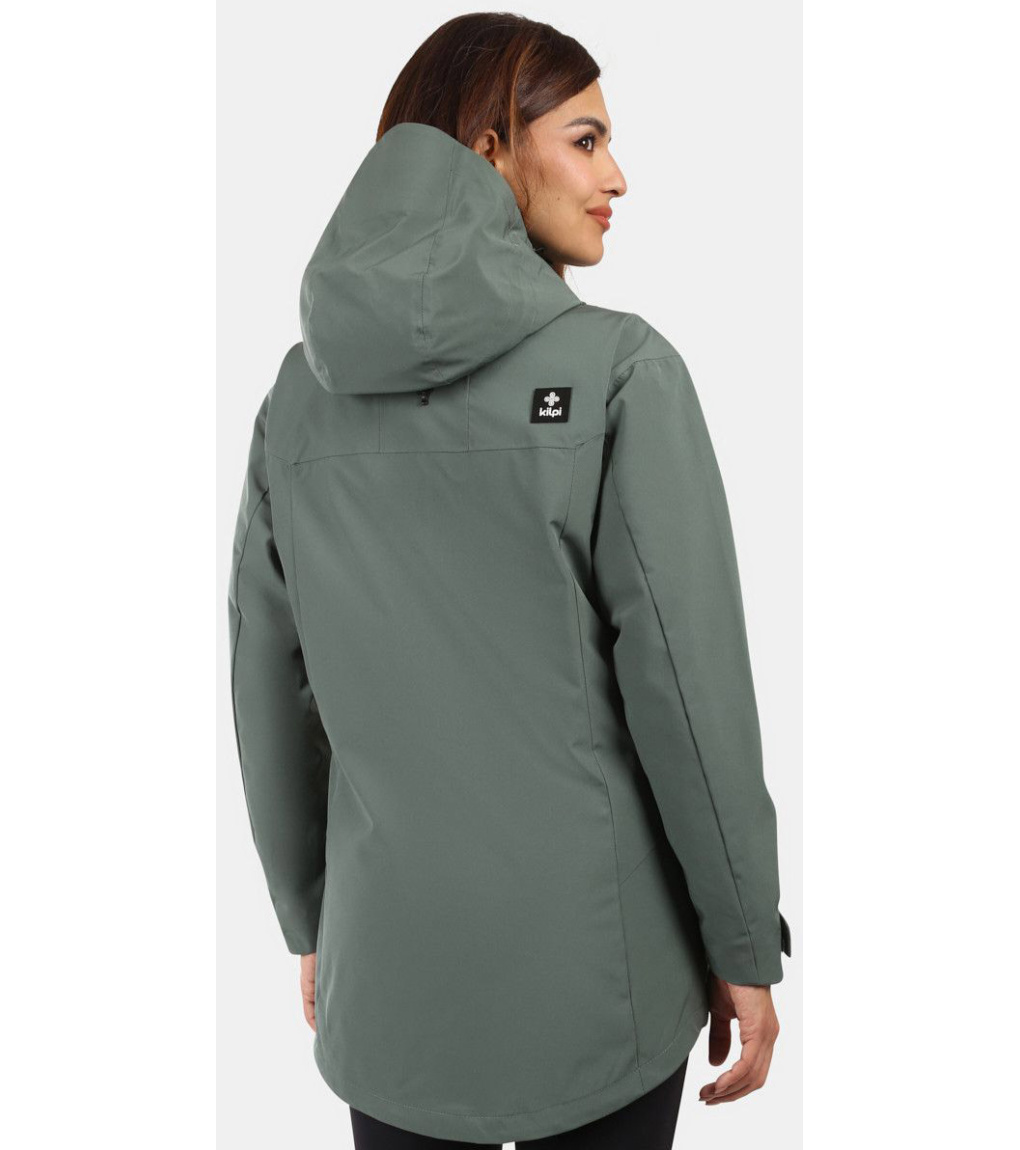 Kilpi AYRA-W to stylowy damski płaszcz łączący w sobie funkcjonalność i elegancję, idealny do noszenia na co dzień, a także do wymagających aktywności na świeżym powietrzu.