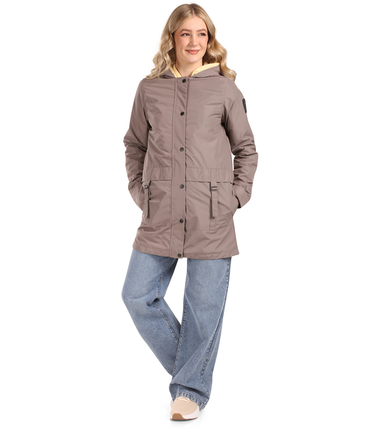 Damski płaszcz membranowy ARESA czeskiej marki NAX wykonany jest z wodoodpornego, oddychającego i wiatroszczelnego materiału PTX, uzupełnionego specjalną hydrofobową powłoką DWR. Ten nowoczesny płaszcz miejski ochroni Cię w niesprzyjającą pogodę, zarówno w mieście, jak i na łonie natury, a dzięki nowoczesnemu wykończeniu zawsze będziesz w centrum uwagi. Piękne zestawienie kolorów, uzupełnione naszywką i nadrukiem, prezentuje się niezwykle świeżo i nowocześnie. Praktyczne kieszenie, kaptur z podszewką i wysokiej jakości zamek błyskawiczny to absolutny must-have.