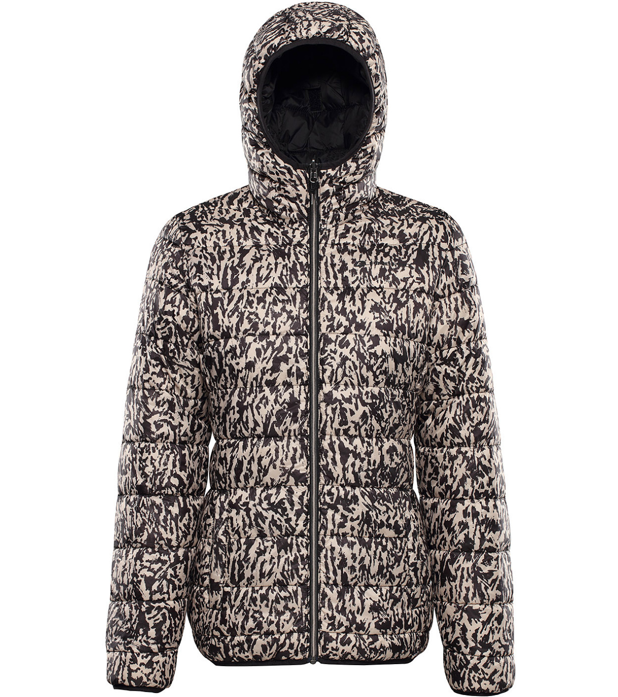 Dwustronna kurtka damska to nowoczesny i praktyczny model, który łączy styl i funkcjonalność. Wykonana jest w 100% z nylonu z hydrofobowym i wiatroszczelnym wykończeniem, dzięki czemu zapewnia niezawodną ochronę w zmiennych warunkach pogodowych. Ultralekki materiał z powłoką Teflon EcoElite™ gwarantuje komfort noszenia i łatwość pielęgnacji. Kurtka wypełniona jest grubym wypełnieniem, które doskonale izoluje i zatrzymuje ciepło, a kontrastowa, drukowana podszewka dodaje całości wyrazistego, modowego akcentu.
