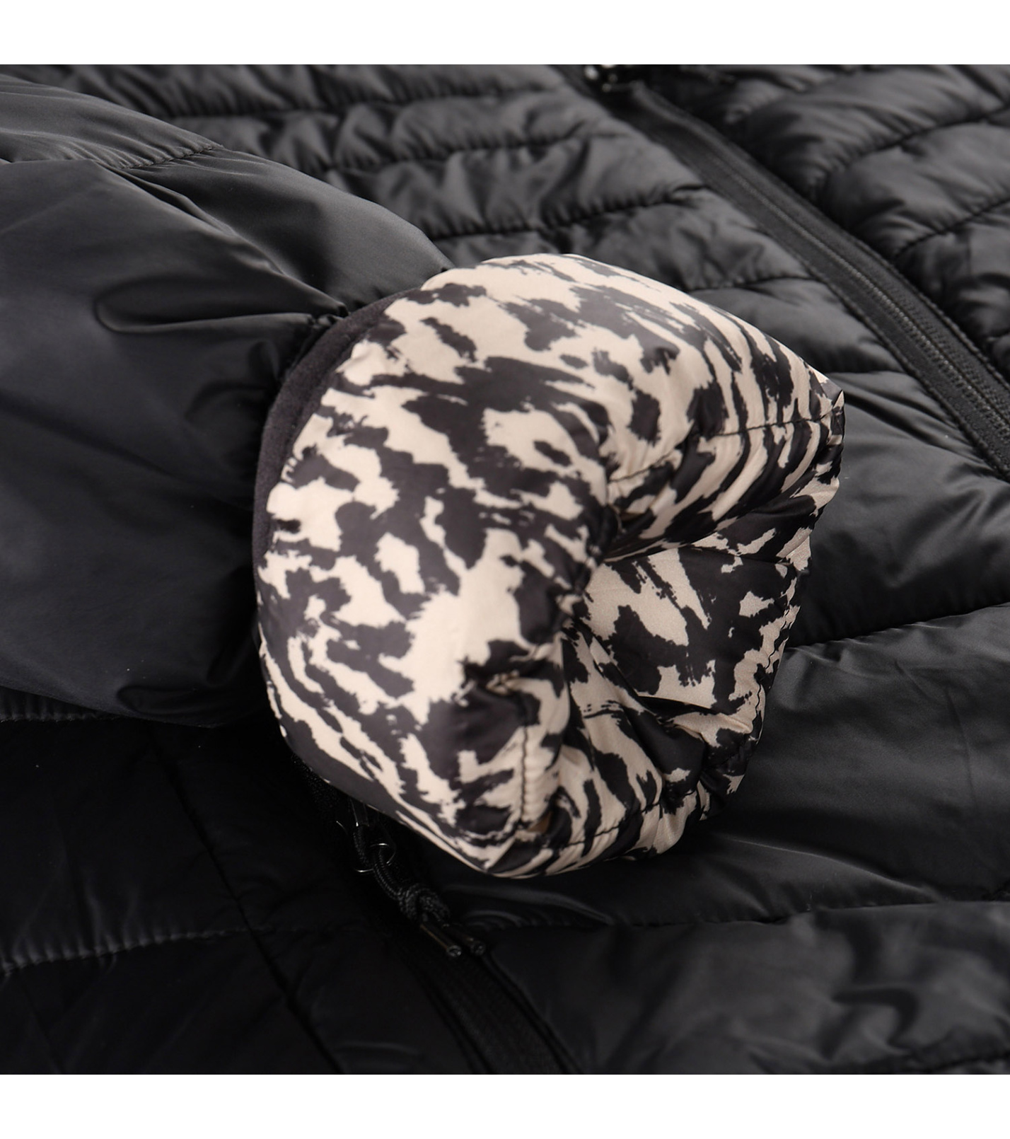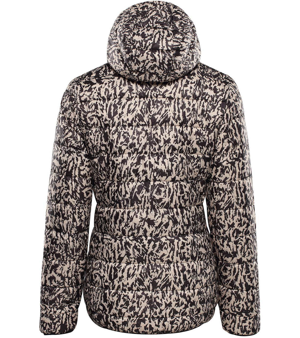 Krój jest pół-dopasowany, co podkreśla kobiecą sylwetkę, jednocześnie zapewniając swobodę ruchów. Nieodpinany kaptur chroni przed wiatrem i deszczem, a praktyczne kieszenie (łącznie cztery) pozwalają na przechowywanie drobiazgów. Fason PUFFY podkreśla obszerny i elegancki wygląd. Dzięki dwustronnemu krojowi kurtkę można nosić na dwa sposoby – z dyskretną stroną wierzchnią z nadrukiem z przodu lub z oryginalną, kontrastową podszewką, która staje się dominującym elementem stylizacji.