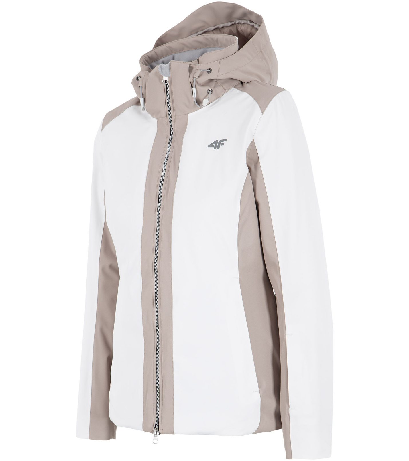 Damska kurtka narciarska 4F, idealna na narty i do codziennego noszenia. Zapewnia wysoki komfort na stokach i podczas chodzenia. Materiał kurtki z membraną NeoDry 8000 i klejonymi krytycznymi szwami zapewnia skuteczną ochronę przed śniegiem i wiatrem, jednocześnie umożliwiając skuteczne odprowadzanie wilgoci. Syntetyczne wypełnienie zapewnia dobrą izolację i komfort termiczny w niskich temperaturach. Kurtka wyposażona jest w zestaw praktycznych kieszeni, które umożliwiają łatwe schowanie gogli, karnetu narciarskiego, telefonu. NeoDry 8000 to materiał membranowy, który charakteryzuje się wysokim poziomem wodoodporności, odporności na wiatr i jest oddychający.