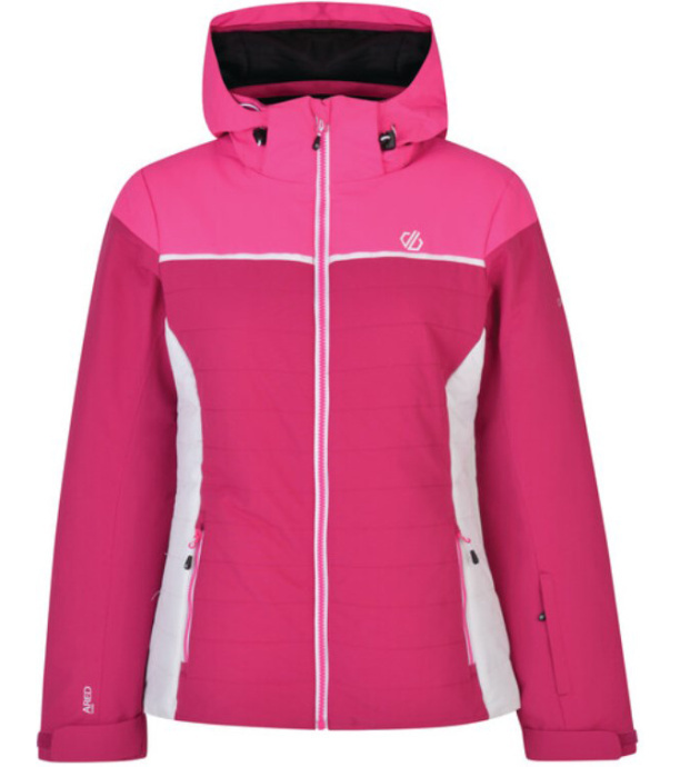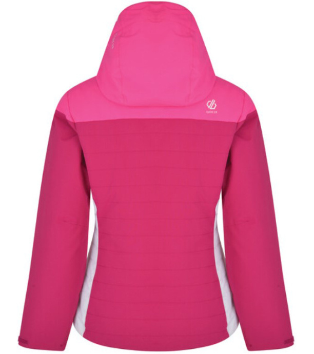Damska kurtka zimowa Dare2b SIGHTLY została wykonana z wodoodpornego i oddychającego materiału ARED V02 Strech 10000. Kurtka jest w całości zapinana na zamek błyskawiczny, ma wysoki kołnierz śnieżny, zamek błyskawiczny przy szyi jest kryty, co zapobiega zadrapaniom brody. Kaptur z daszkiem jest przymocowany na stałe i można go regulować za pomocą zamka błyskawicznego. Kurtka ma także pas śnieżny z silikonowym wykończeniem, regulację rękawów na rzepy oraz regulację dolnego brzegu za pomocą zamka błyskawicznego. Dwie główne kieszenie zapinane na suwak, kieszeń na karnet narciarski na lewym przedramieniu, dwie wewnętrzne kieszenie z siatki na okulary. Tylna strona ma podszewkę poliestrową z panelem antypoślizgowym. Uszczelnione szwy zapobiegają przedostawaniu się wilgoci z zewnątrz do materiału. Kurtka ma izolację poliestrową o małej objętości, która charakteryzuje się doskonałymi właściwościami termicznymi i jest łatwa w utrzymaniu.