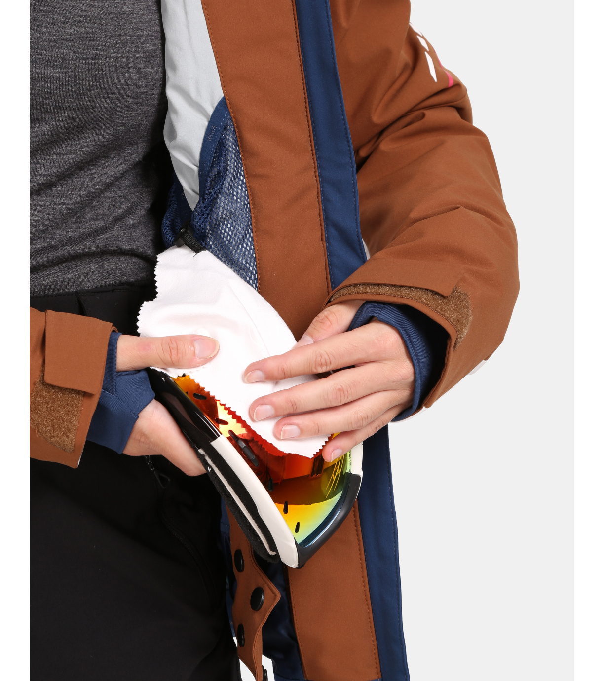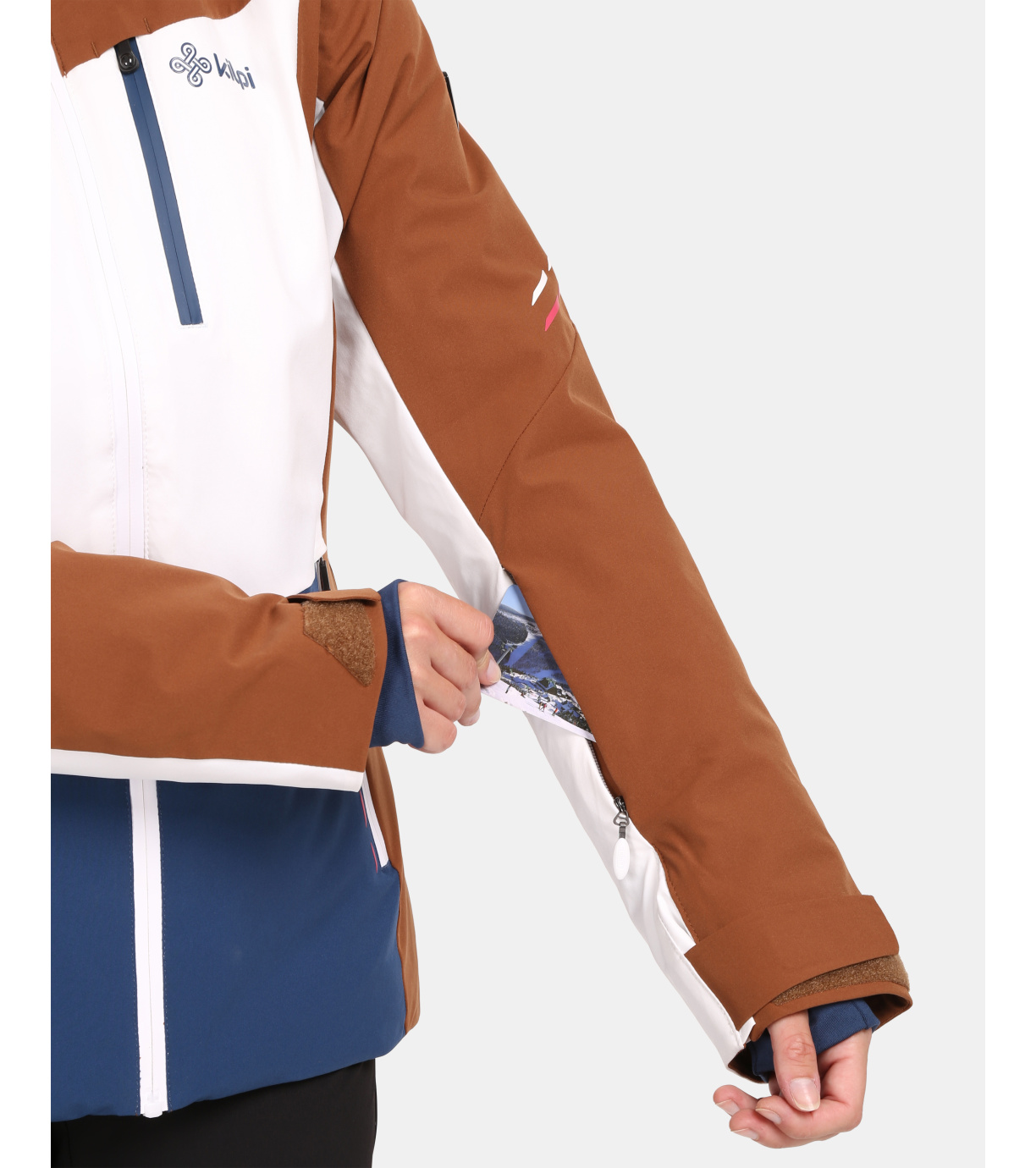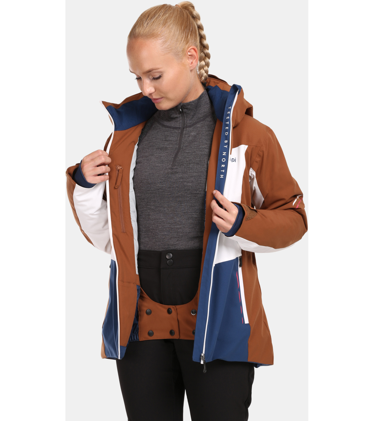 Na trwało wszyty pas ochronny przeciwśnieżny, który zapobiega przedostawaniu się śniegu pod ubranie. Na dole wszyta jest elastyczna guma antypoślizgowa.