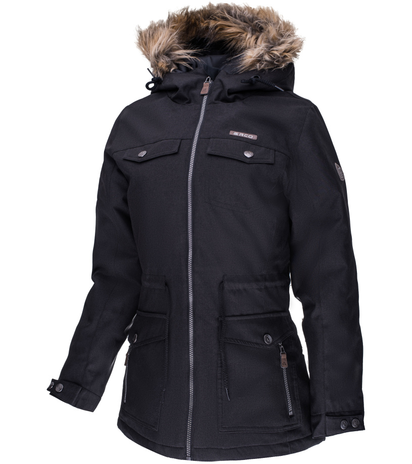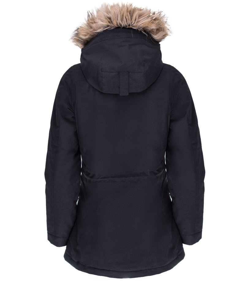 Damska kurtka zimowa DARONIA ochroni Cię przed wiatrem, deszczem i mrozem. Izolacja wykonana jest z ciepłych, pustych włókien. Dodatkowo z pewnością docenisz praktyczne, duże kieszenie boczne, regulowany kaptur ozdobiony futerkiem oraz osłonę podbródka. Ściągacz w talii. Regulacja rękawów na napy. Wypełnienie z włókien pustych.