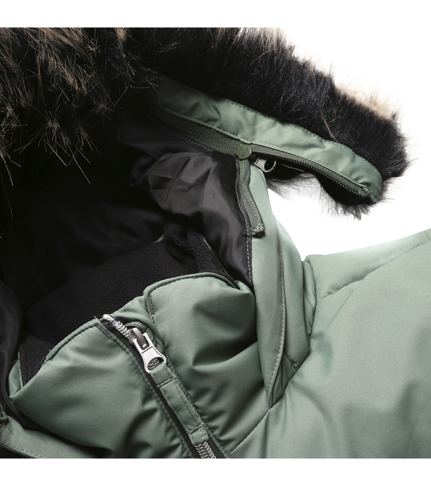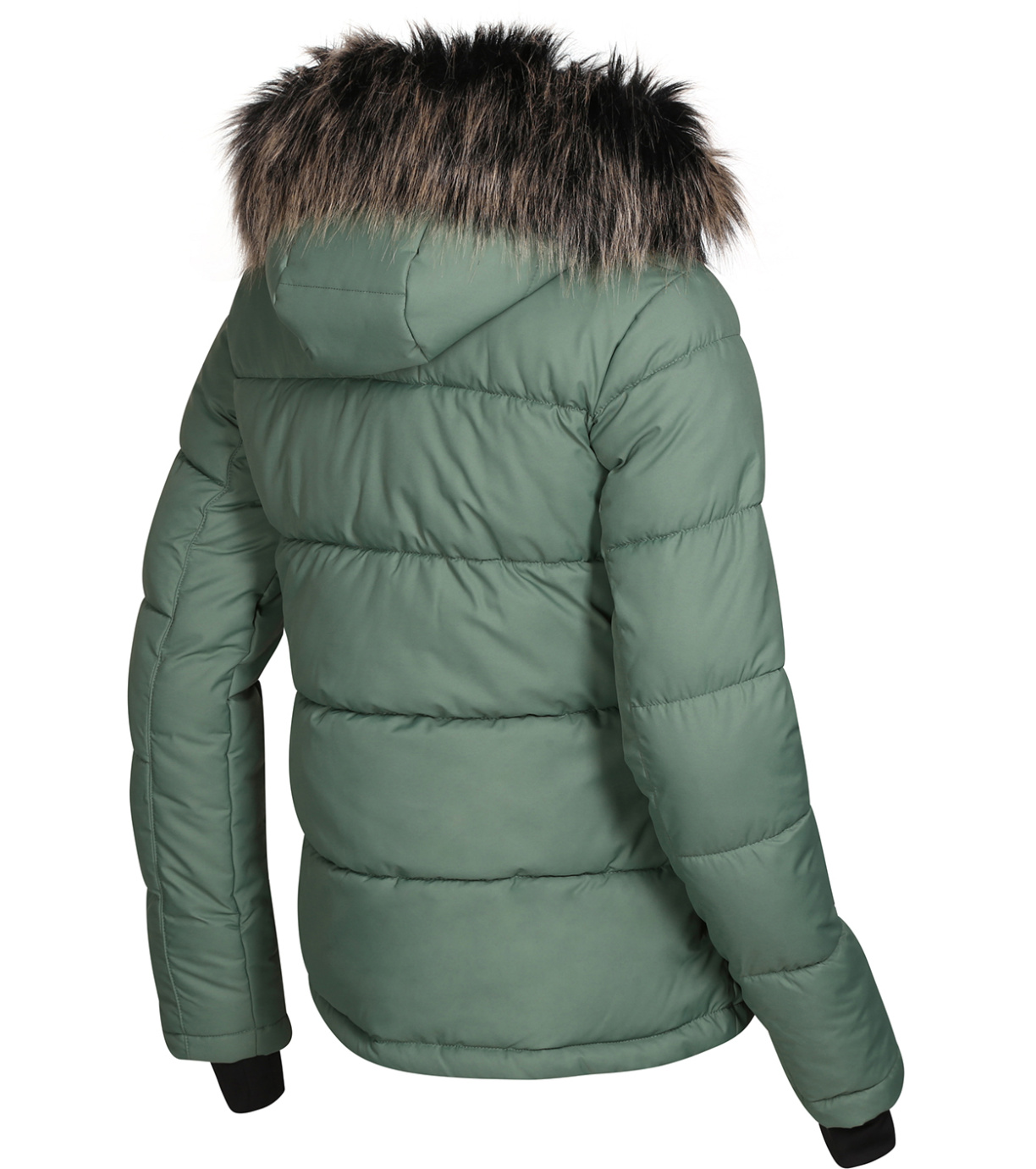 Damska kurtka zimowa PERETA to doskonały wybór zarówno do miasta, jak i do przyrody, zawsze zapewni niezbędny komfort. Wykonana z materiału chroniącego przed wiatrem, a chwilowo także przed śniegiem, zagwarantuje Ci komfort nawet w chłodniejsze dni. Kurtka ma ciepłą podszewkę oraz praktyczny kaptur ze sztucznym futerkiem, który zapewnia dodatkową ochronę przed zimnem. Rękawy mają wewnętrzny mankiet, który zapobiega przedostawaniu się chłodu, a dwie kieszenie służą do przechowywania drobiazgów lub do ogrzania dłoni. Dłuższe uchwyty zamka błyskawicznego ułatwiają zapinanie nawet w rękawiczkach. Nowoczesny, Puffy styl i pół-dopasowany krój nadają kurtce elegancki wygląd i wygodne dopasowanie.