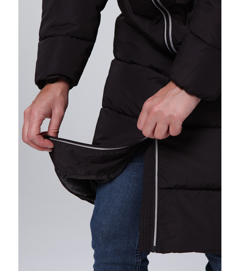 Płaszcz damski Loap TANDORA to świetny towarzysz w mieście, w pracy i podczas spokojnych spacerów. Wierzch wykonany z materiału STORMEX wraz z wodoodporną powłoką DryTech ochroni Cię przed złą pogodą. Dzięki wypełnieniu z włókien POLYTHERM i wydłużonej długości zimno nie ma szans. Nieważne, dokąd w nim pójdziesz, dzięki miękkiej podszewce i luźnemu krojowi będziesz się czuć w nim komfortowo. Dodatkowo ocieplenie ma pamięć kształtu, dzięki czemu płaszcz pięknie Cię otuli. Zapinany jest na dwukierunkowy, odwrócony zamek spiralny, umożliwiający rozpięcie z obu stron. Rękawy mają wewnętrzne elastyczne ściąganie. Elegancki wygląd uzupełnia zintegrowany kaptur i dwie kieszenie zapinane na zamek.