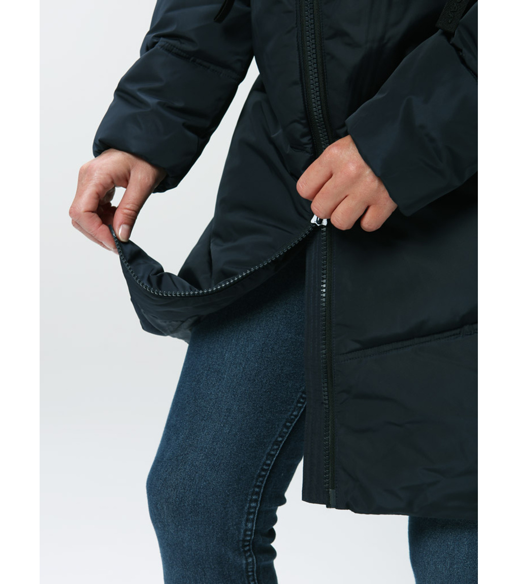 Damski płaszcz o dopasowanym kroju to idealny wybór dla kobiet poszukujących połączenia elegancji, wygody i funkcjonalności. Dzięki ociepleniu z włókien POLYTHERM doskonale izoluje ciepło, a jednocześnie dopasowuje się do sylwetki, co zwiększa komfort noszenia. Wodoodporna powłoka DRYTECH chroni przed lekkim śniegiem i deszczem, dzięki czemu możesz polegać na płaszczu nawet przy zmiennej pogodzie. Zintegrowany kaptur z możliwością regulacji zapewnia dodatkową ochronę przed wiatrem i zimnem. Płaszcz zapinany jest na długi, dwukierunkowy zamek błyskawiczny, który ułatwia poruszanie się i jednocześnie wygląda stylowo. Wewnętrzna elastyczna regulacja zapewnia wygodę w rękawach, a dolna krawędź pozostaje luźna, co zapewnia naturalny wygląd. Dwie zewnętrzne kieszenie pomieszczą dłonie i drobiazgi, które musisz mieć przy sobie. Krótko mówiąc, płaszcz to idealny wybór do noszenia na co dzień w mieście, do pracy i na zimowe spacery. Ocieplina z włókien POLYTHERM.