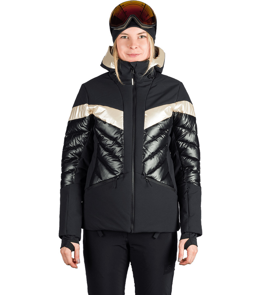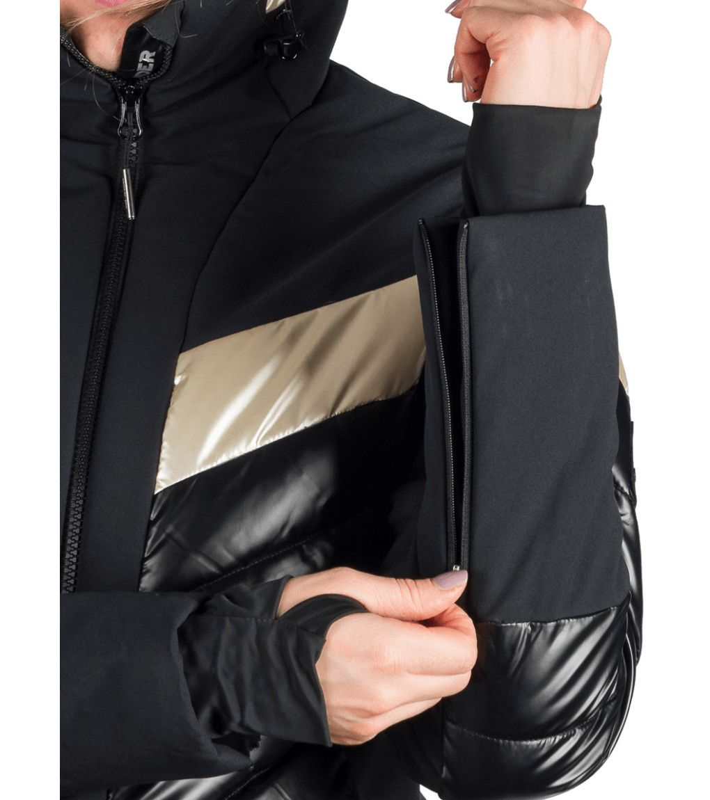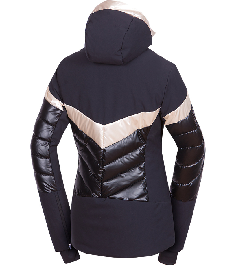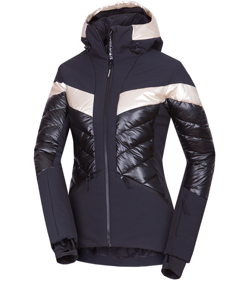 Modna damska kurtka narciarska ABIGALE jest gotowa na zimowe wyzwania – od opadów śniegu po silny wiatr. Wykonana z dwóch kontrastujących materiałów, zapewnia dobrą ochronę przed wiatrem i wilgocią, zachowując jednocześnie oddychalność. Ekologiczna powłoka WR bez PFC zapobiega spływaniu kropel wody z powierzchni. Komfort termiczny wspiera izolacja, pas śnieżny i listwa zabezpieczająca przed przewiewaniem pod zamkiem błyskawicznym. Praktyczność kurtki zwiększają dwie boczne kieszenie zapinane na zamek, kieszeń na karnet narciarski na rękawie, wewnętrzna kieszeń na piersi oraz wewnętrzna kieszeń na okulary. Kurtka ma profilowane rękawy z wewnętrznym elastycznym mankietem z lycry dla lepszej ochrony i komfortu.