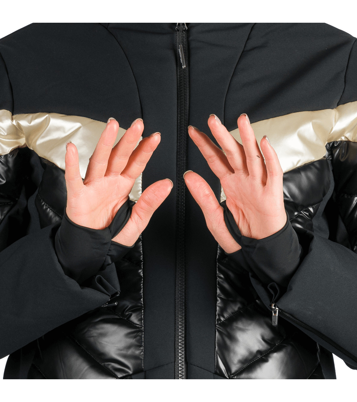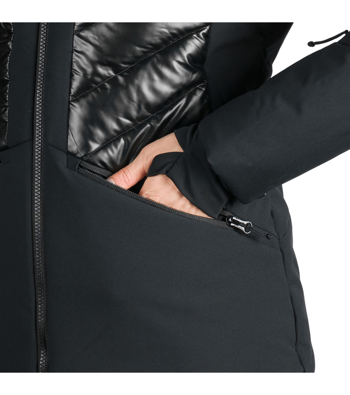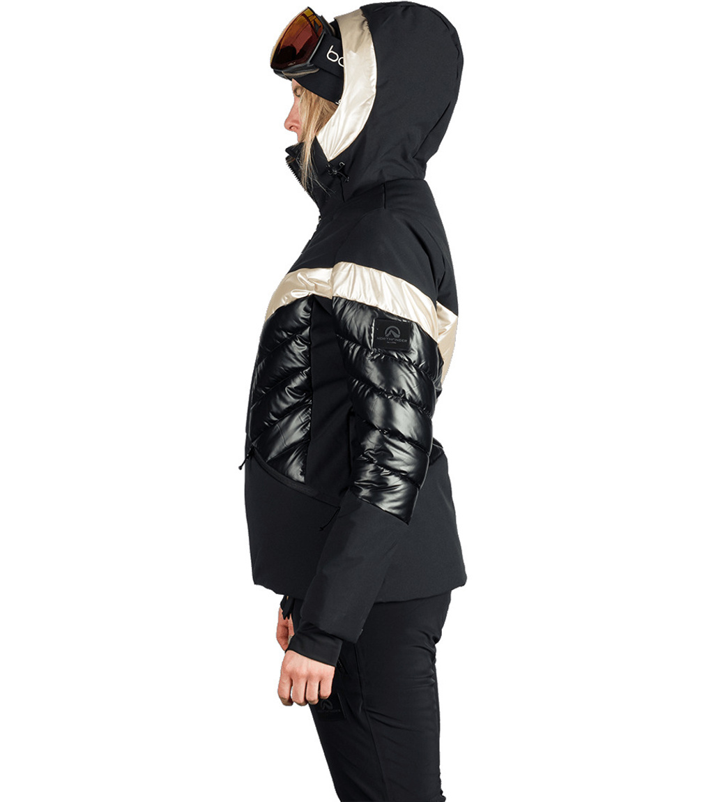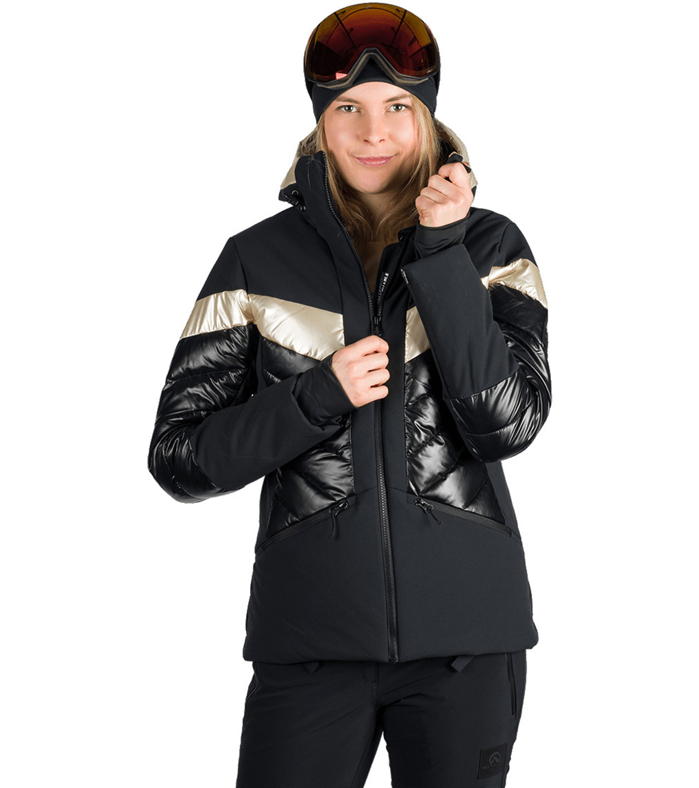 Modna damska kurtka narciarska ABIGALE jest gotowa na zimowe wyzwania – od opadów śniegu po silny wiatr. Wykonana z dwóch kontrastujących materiałów, zapewnia dobrą ochronę przed wiatrem i wilgocią, zachowując jednocześnie oddychalność. Ekologiczna powłoka WR bez PFC zapobiega spływaniu kropel wody z powierzchni. Komfort termiczny wspiera izolacja, pas śnieżny i listwa zabezpieczająca przed przewiewaniem pod zamkiem błyskawicznym. Praktyczność kurtki zwiększają dwie boczne kieszenie zapinane na zamek, kieszeń na karnet narciarski na rękawie, wewnętrzna kieszeń na piersi oraz wewnętrzna kieszeń na okulary. Kurtka ma profilowane rękawy z wewnętrznym elastycznym mankietem z lycry dla lepszej ochrony i komfortu.