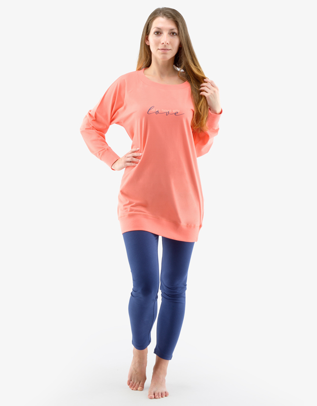 Podstawą dobrej jakości snu jest Twój komfort, w czym pomaga również wygodna bielizna nocna. Nasza piżama damska z rękawami „nietoperz” i długimi legginsami zadowoli każdą miłośniczkę wygody i naturalnych materiałów, ponieważ jest w całości wykonana ze 100% bawełnianej dzianiny. Możesz wykorzystać ją nawet jako ubrania domowego, ponieważ nadaje się do noszenia na co dzień.