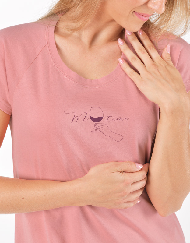 Podstawą dobrego snu jest Twój komfort, który może być wspierany przez wygodną bieliznę nocną. Nasza damska koszula nocna z krótkim rękawem to idealny wybór dla każdej miłośniczki wysokiej jakości materiałów i wygodnych krojów. Koszulka ma długość za kolana, nadruk na piersi, okrągły dekolt, który nie uciska, i jest wykonana w 100% z bawełny.