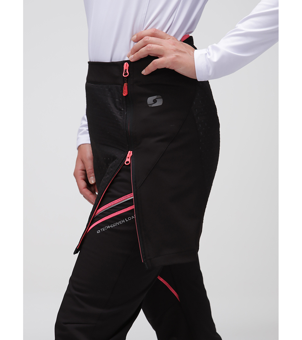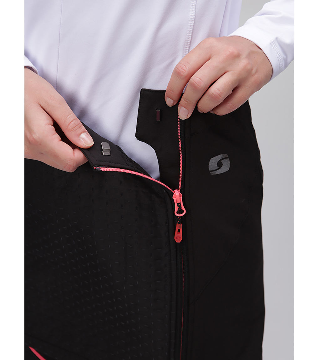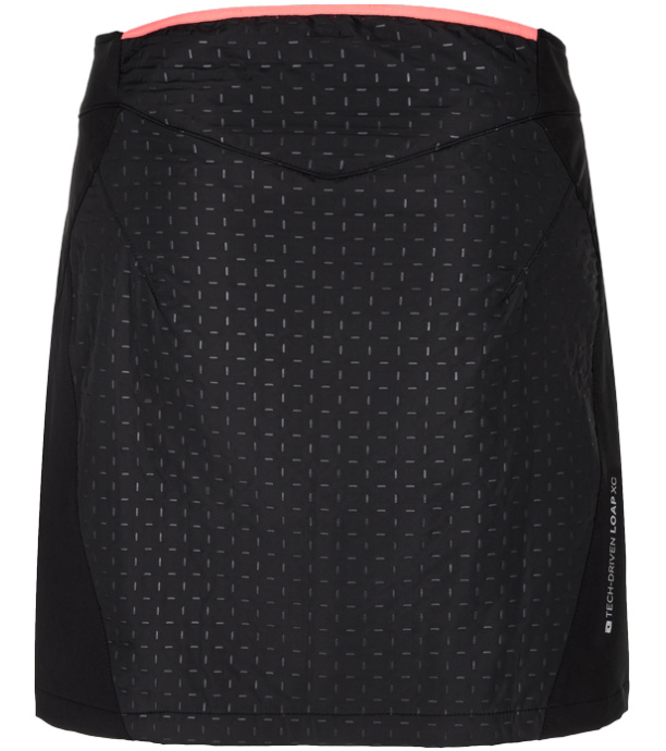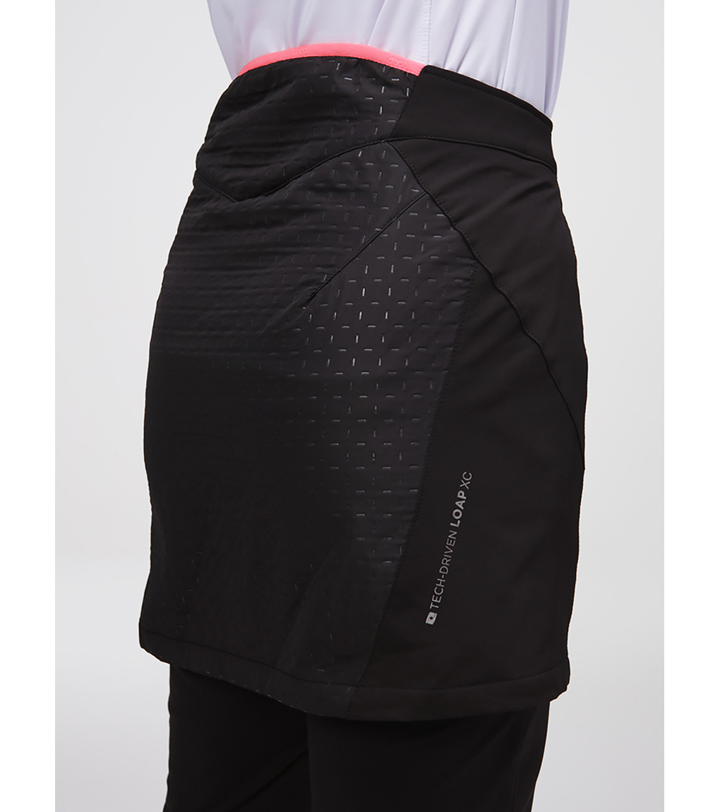 Damska spódnica sportowa Loap UXNORA to uniwersalna spódnica, która posłuży jako dodatkowa ciepła warstwa podczas zimowych wędrówek, biegów narciarskich i jazdy na nartach. Spódnica wykonana jest z lekkiego materiału funkcjonalnego TECNOSOFT, który charakteryzuje się nie tylko elastycznością, ale przede wszystkim niezawodną izolacją od wpływów zewnętrznych, czy to wiatru, czy zimna. Dodatkowo spódnica ma ocieplenie z przodu i z tyłu wykonane z polaru uzupełnionego technologią wzmocnień STORMEX Ultrasonic. Łatwe i szybkie ubieranie zapewnia odwrócony zamek spiralny z możliwością rozpięcia na całej długości, a także z obu stron. Klasyczny krój uzupełnia częściowo elastyczna talia z podwyższonym tyłem wzmacniającym ochronę bioder. Dolna krawędź spódnicy nie ma ściągacza. Widoczność w ciemności i tym samym bezpieczeństwo zapewniają elementy odblaskowe.