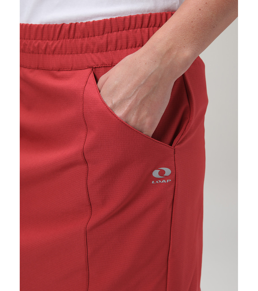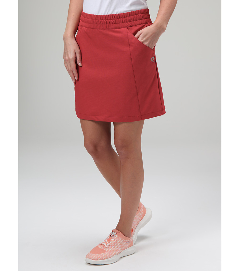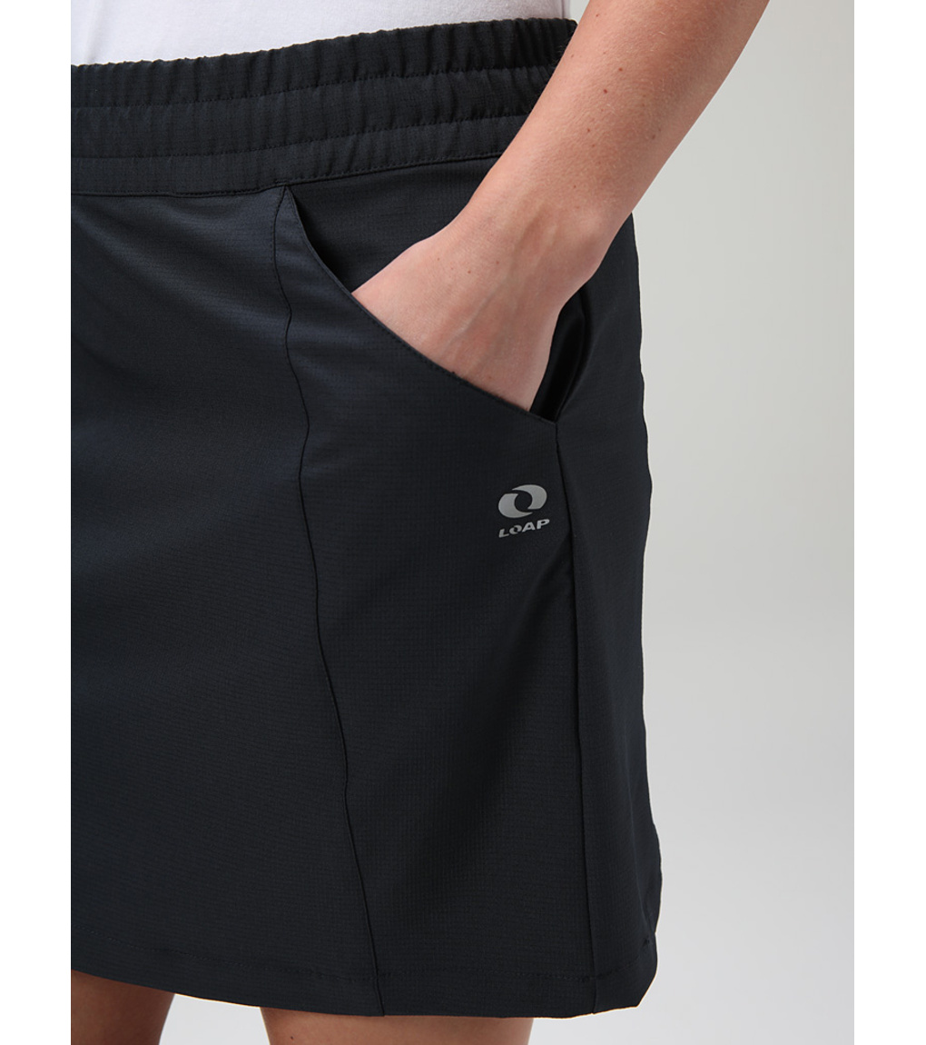 Bądź stylowa i na szlaku! Damska spódnica sportowa Loap UZNORA to idealny towarzysz wycieczek do przyrody i innych aktywności na świeżym powietrzu. Spódnica wyróżnia się lekkością i przewiewnością, wykonana jest z materiału, który nie wchłania wody i szybko schnie. Dzięki zawartości elastanu, a także gumce w pasie ze sznurkiem, spódnica pięknie się układa i nie krępuje ruchów. Świetnym dodatkiem są wewnętrzne elastyczne spodenki, które zarówno są praktyczne pod względem poruszania się w zróżnicowanym terenie, jak i sprawiają, że spódnica nie odsłania tego, czego nie ma, a także chronią przed nieprzyjemnym otarciem skóry po wewnętrznej stronie ud. Dwie zewnętrzne kieszenie przydadzą się w podróży, a gdy zapadnie zmrok, docenisz odblaskowe elementy, dzięki którym będziesz widoczna nawet z większej odległości. Przyjemny, elastyczny i niechłonny materiał. Szybko odprowadza pot z powierzchni ciała i dobrze schnie.