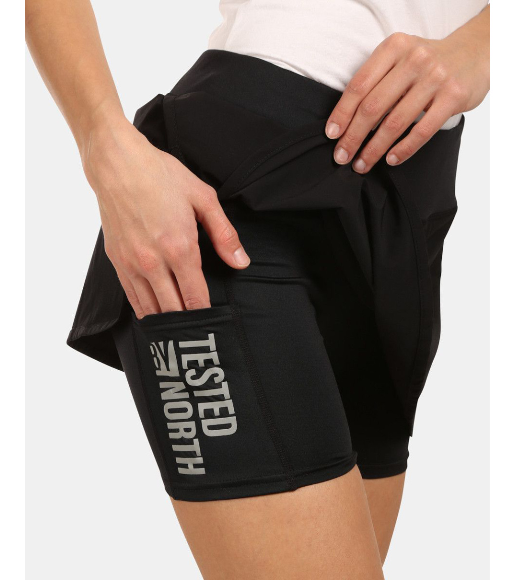 Kilpi TITICACA-W to spódnica sportowa przeznaczona przede wszystkim do biegaczy, ale nadaje się również do jazdy na rolakch, fitnessu lub aktywności outdoorowych. Wewnętrzne spodenki do połowy uda wykonane z materiału OPTI-DRY są bardzo elastyczne, nieprzezroczyste i dobrze przylegają. Spodenki i spódnica uszyte są płaskimi szwami, które nie podrażniają skóry. Panie z pewnością docenią praktyczne kieszenie np. na telefon komórkowy, umieszczone po bokach ud. W szerokim pasie ukryta jest także mała kieszonka na klucze lub pieniądze. Luźniejsza spódnica z rozcięciami po bokach ma długość pod pupę.