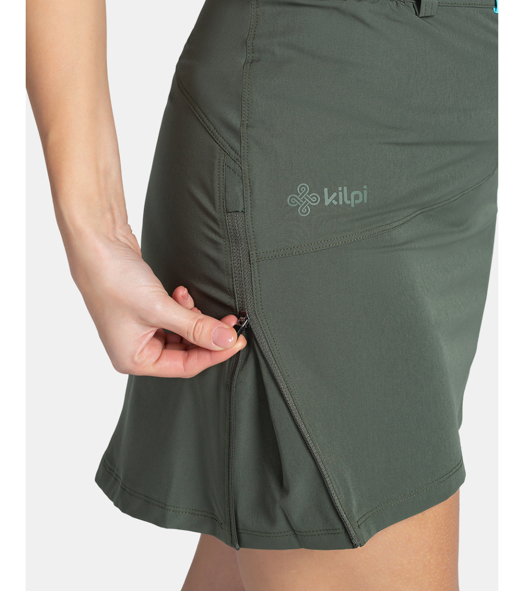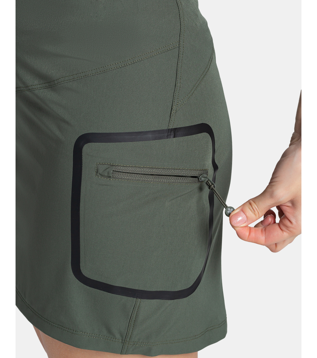 Kilpi ANA-W to damska spódnica sportowa, która nadaje się do wędrówek, spacerów lub codziennego noszenia w mieście. Materiał, z którego wykonana jest spódnica jest lekki, przewiewny i elastyczny. Spódnica w kształcie litery A ma długość do połowy uda. Panie z pewnością docenią boczny zamek błyskawiczny, który zapewnia swobodę ruchów podczas wchodzenia po schodach lub siadania. Spódnica ma klasyczny zamek błyskawiczny, szlufki na pasek i dyskretną naszytą kieszeń z boku.