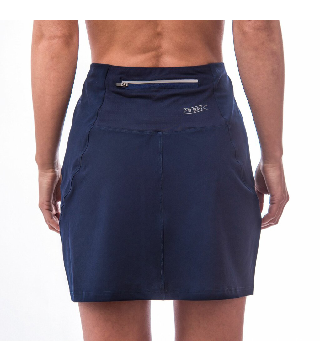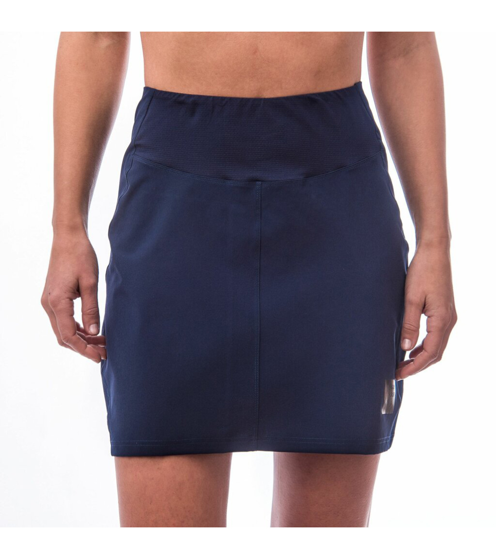 Spódnica rowerowa bez wkładki rowerowej wykonana z lekkiego i oddychającego materiału, który gwarantuje maksymalną swobodę ruchów. Superszybkie usuwanie wilgoci ze skóry i ochrona UPF25 przed promieniowaniem UV. Jony srebra zapobiegają przykrym zapachom i tworzą trwałą ochronę antybakteryjną. Spódnica ozdobiona jest trwałym, delikatnym nadrukiem. Tylna kieszeń zapinana na zamek zachwyci Cię, gdzie niezbędne drobiazgi zmieszczą się wygodnie.