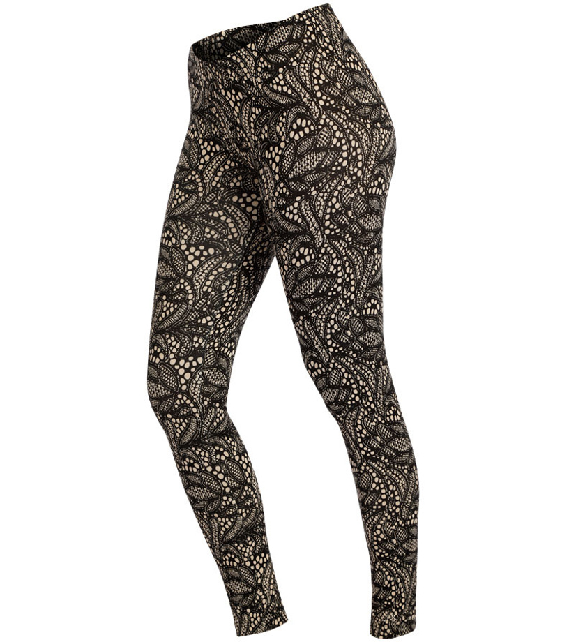 Legginsy w koronkowym wyglądzie, z elastyczną talią. Wiskozowy materiał jest doskonale elastyczny i niezwykle wygodny w noszeniu. Świetny element, który można łączyć, zwłaszcza z naszymi tunikami.