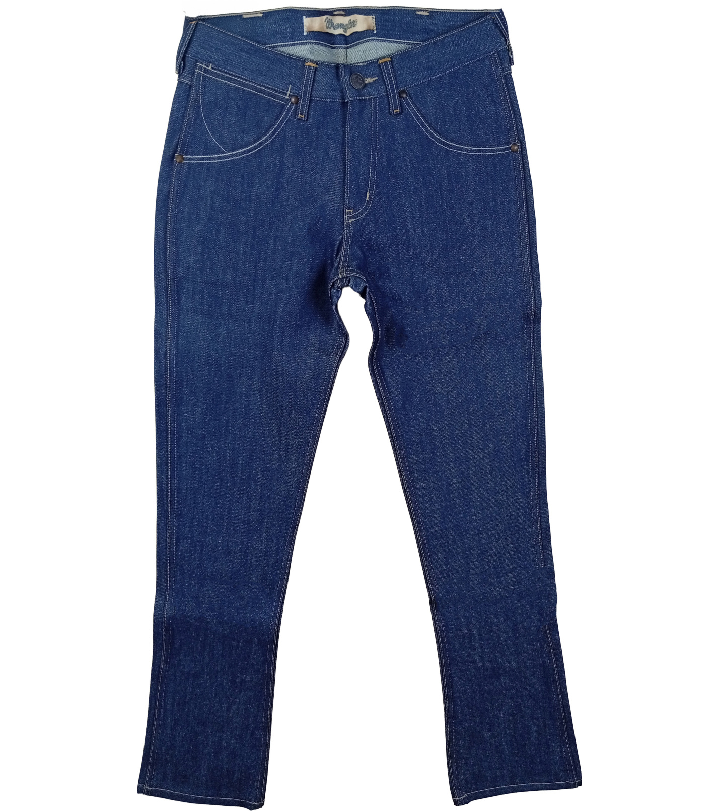 Damskie jeansy Wrangler z klasycznego, ciemnoniebieskiego denimu charakteryzują się wygodnym krojem i lekko rozszerzonymi nogawkami. Mają średni stan, pięć kieszeni i charakterystyczne przeszycia w kształcie litery „W” na tylnych kieszeniach, które podkreślają autentyczny styl Wrangler.