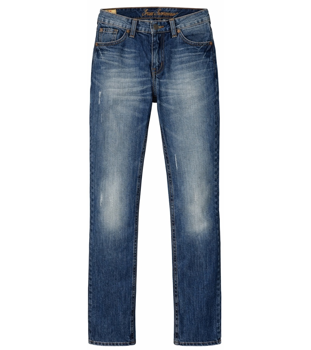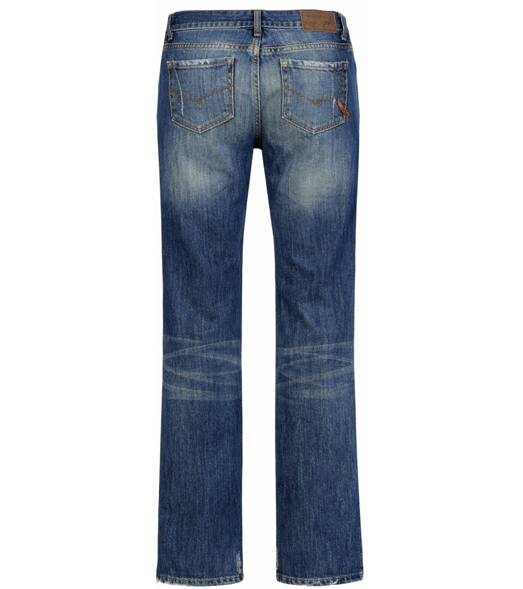 Damskie jeansy w klasycznym odcieniu niebieskiego z subtelnymi przeszyciami na udach, nadającymi im nowoczesny, lekko przetarty wygląd. Prosty lub lekko zwężany krój nogawek zapewnia wygodę i wszechstronne zastosowanie w codziennych stylizacjach. Wysokiej jakości denim jest wytrzymały i przyjemny w dotyku. Jeansy zapinane są na guzik i zamek błyskawiczny, mają pięć kieszeni i tradycyjne, kontrastowe przeszycia. Idealny wybór na co dzień i do noszenia w mieście.