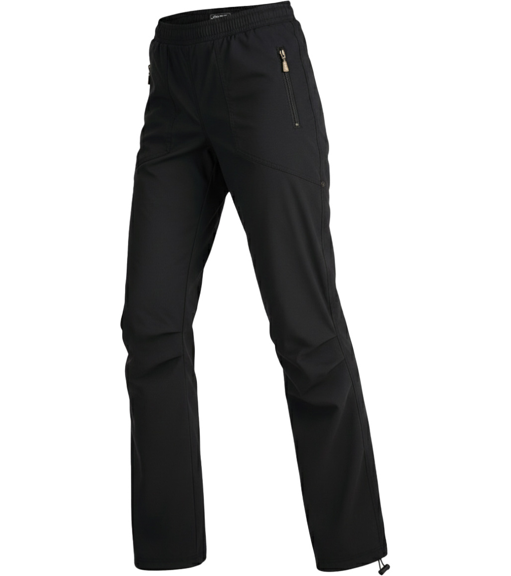 Spodnie damskie. Elastyczny pas ze sznurkiem. Elastyczne nogawki ze ściągaczem ze stoperem.