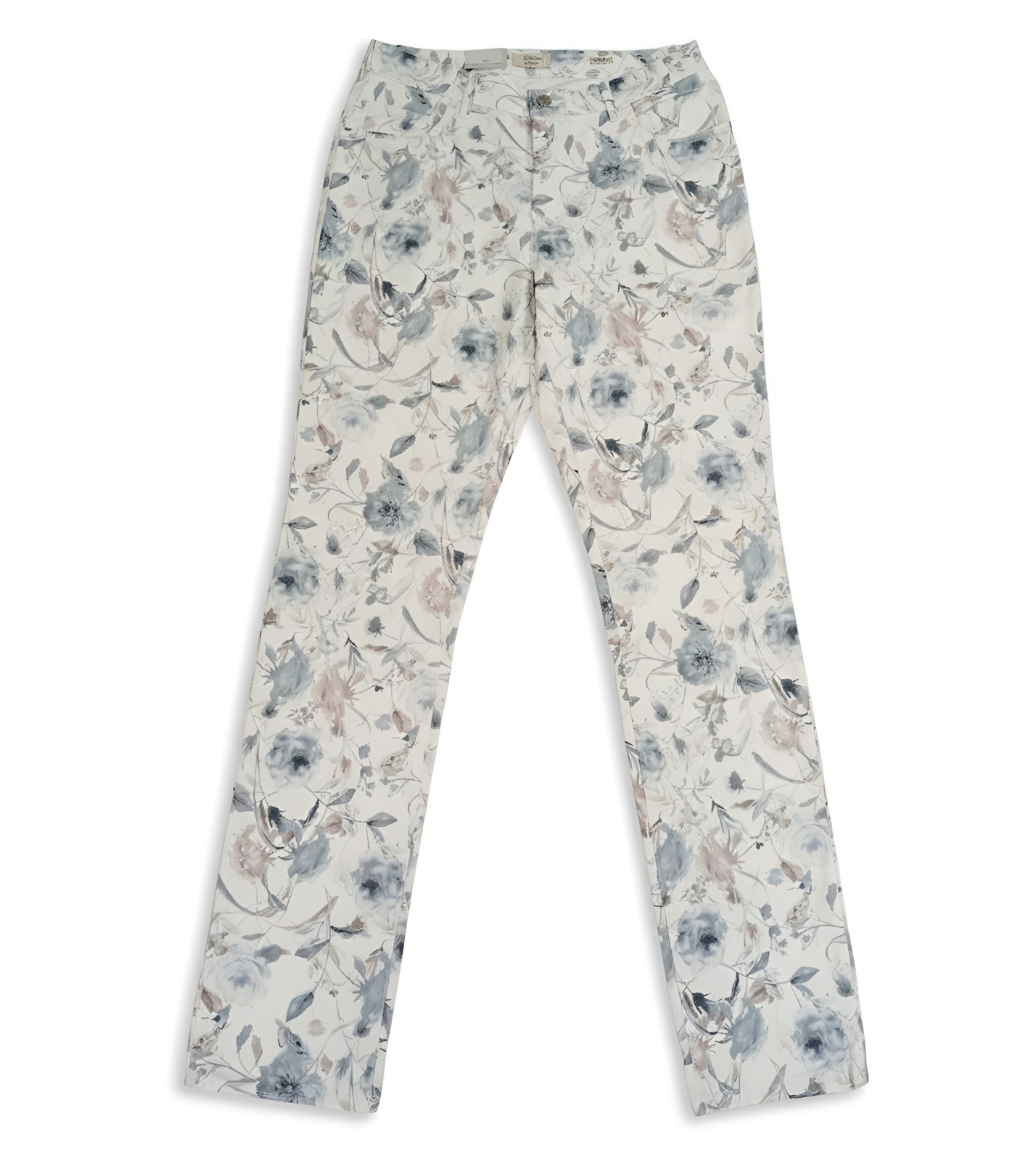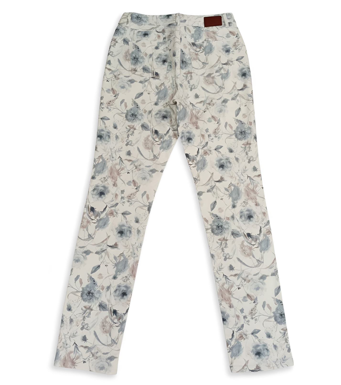 Spodnie zdobi subtelny kwiatowy wzór na całej powierzchni, który dodaje stylizacji kobiecości i świeżości. Klasyczny krój z kieszeniami z przodu i z tyłu prezentuje się ponadczasowo i z łatwością można go łączyć zarówno z elegancką, jak i casualową stylizacją.