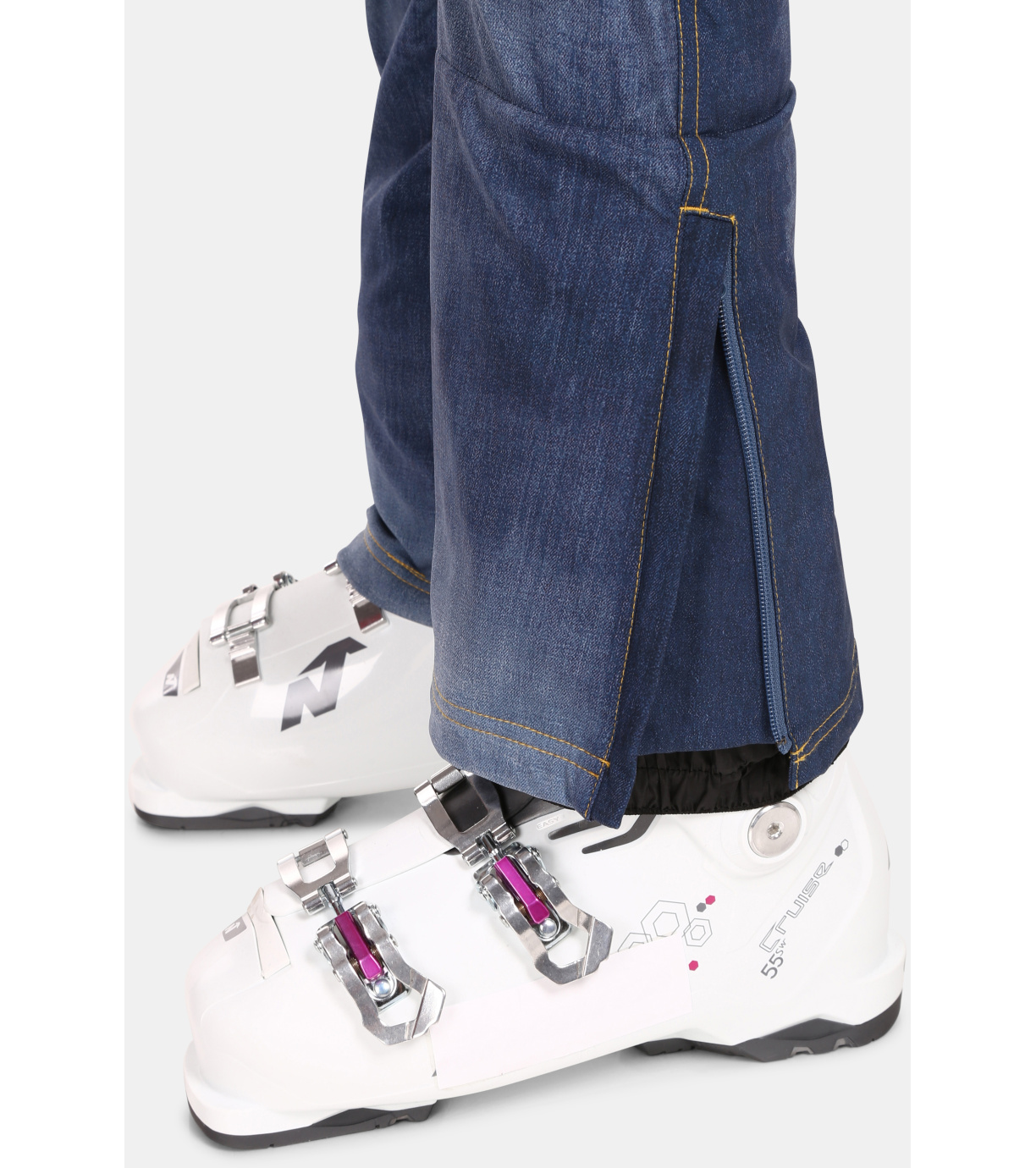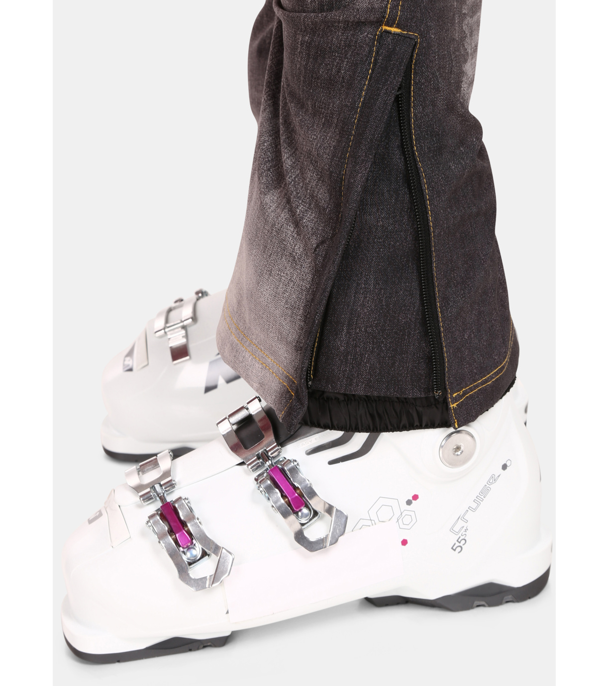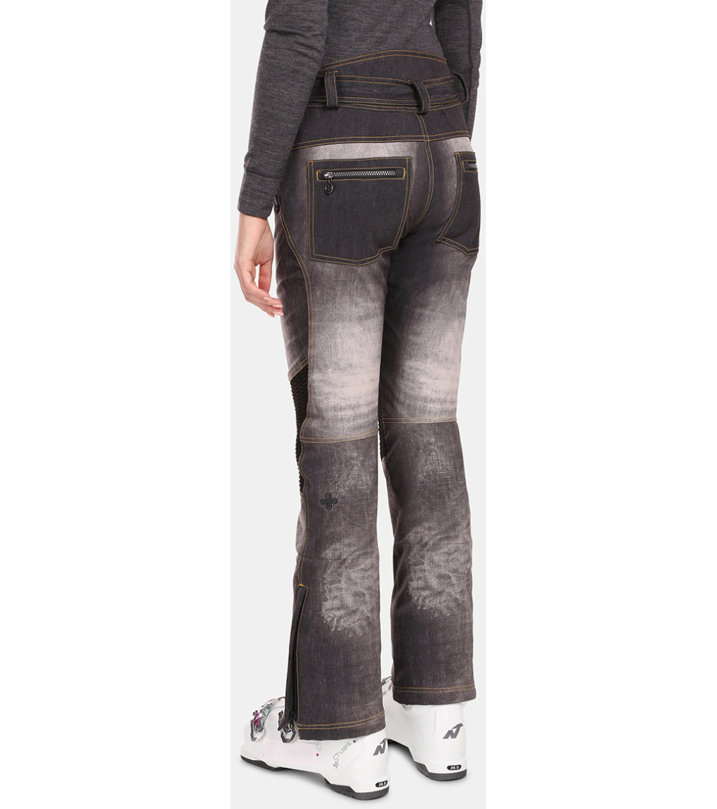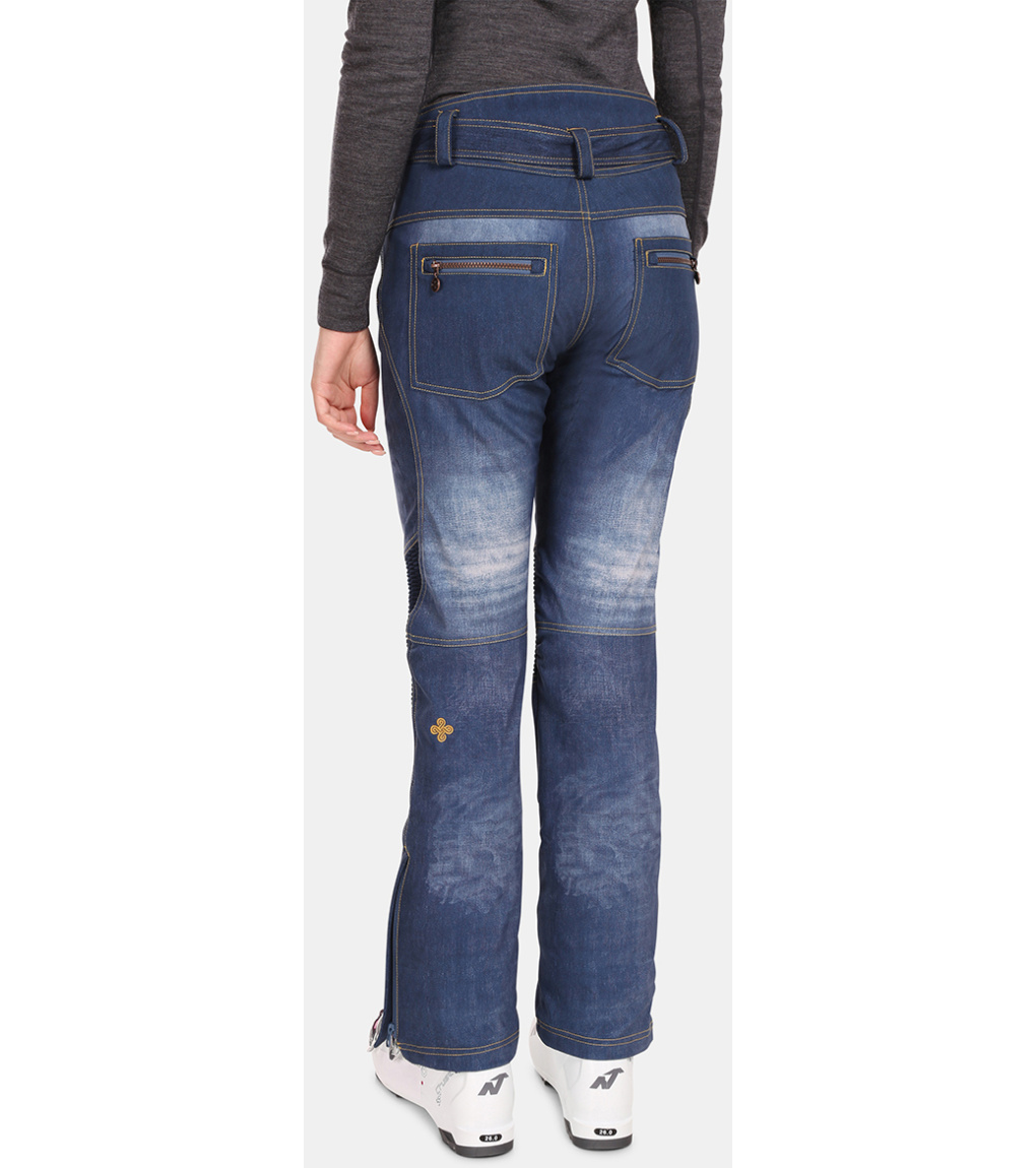 Spodnie JEANSO-W to bardzo popularny produkt z oferty damskich spodni narciarskich. Wytrzymały materiał softshell z podwójnymi szwami zwiększającymi ich wytrzymałość, wyposażony jest w membranę o słupie wody 10000 mm oraz ciepłą warstwę wewnętrzną z mikropolaru. Modny dżinsowy wzór z nadrukiem na całej powierzchni uzupełniają ozdobne zamki i przeszycia. Spodnie wyposażone są w cztery kieszenie zapinane na zamek. W komplecie osobny pasek z metalową klamrą. Dolny brzeg nogawek z zamkiem błyskawicznym i wewnętrznym mankietem przeciwśnieżnym można z łatwością założyć na buty narciarskie. Spodnie Kilpi JEANSO-W dostępne są w dwóch wersjach kolorystycznych.