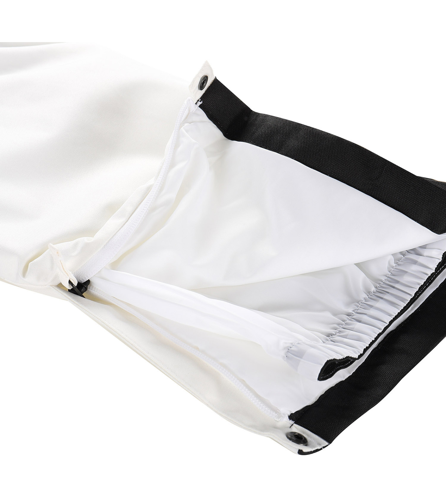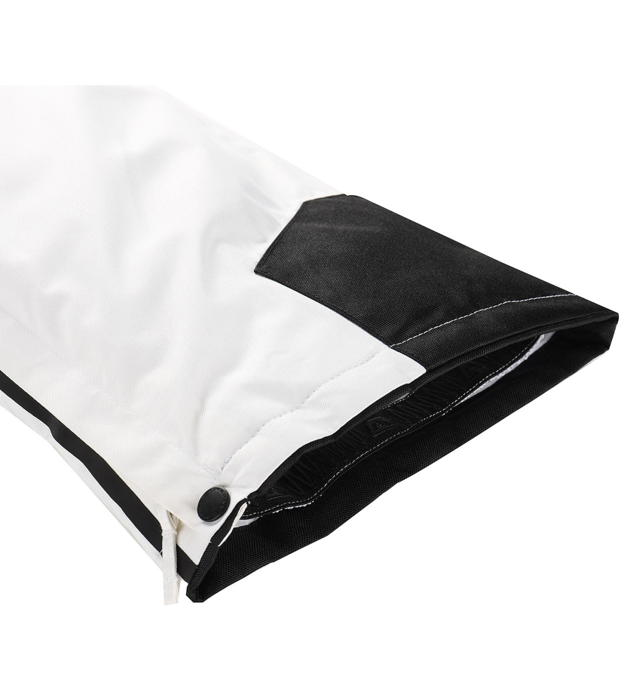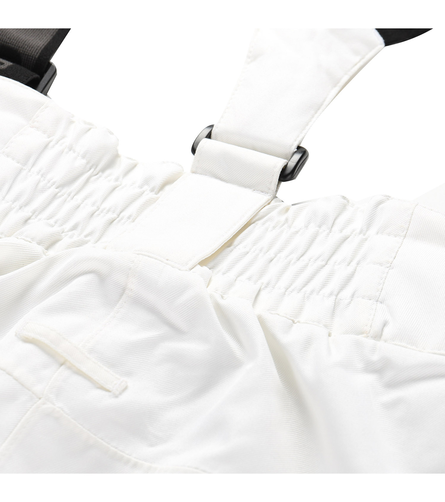 Spodnie mają rozpinane nogawki u dołu, co ułatwia zakładanie butów narciarskich, oraz wzmocnione części zapewniające wentylację po wewnętrznej stronie ud. Talia wciągnięta w gumkę z tyłu, regulowana i podwyższona, co zapewnia wygodę i ochronę przed zimnem. Regulowane i odpinane szelki zapewniają dodatkowe możliwości personalizacji, a nieodpinany mankiet śnieżny chroni przed śniegiem. Krój jest częściowo dopasowany, co zapewnia nowoczesny wygląd i swobodę ruchów. Anatomicznie ukształtowane kolana i klejone szwy zwiększają komfort i ochronę.