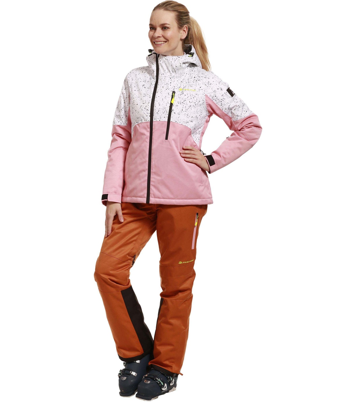 wykończenie materiału: membrana PTX SNOW, słup wody 10 000 mm, paroprzepuszczalność 10 000 g/m2/24h, Ret<10, DWR