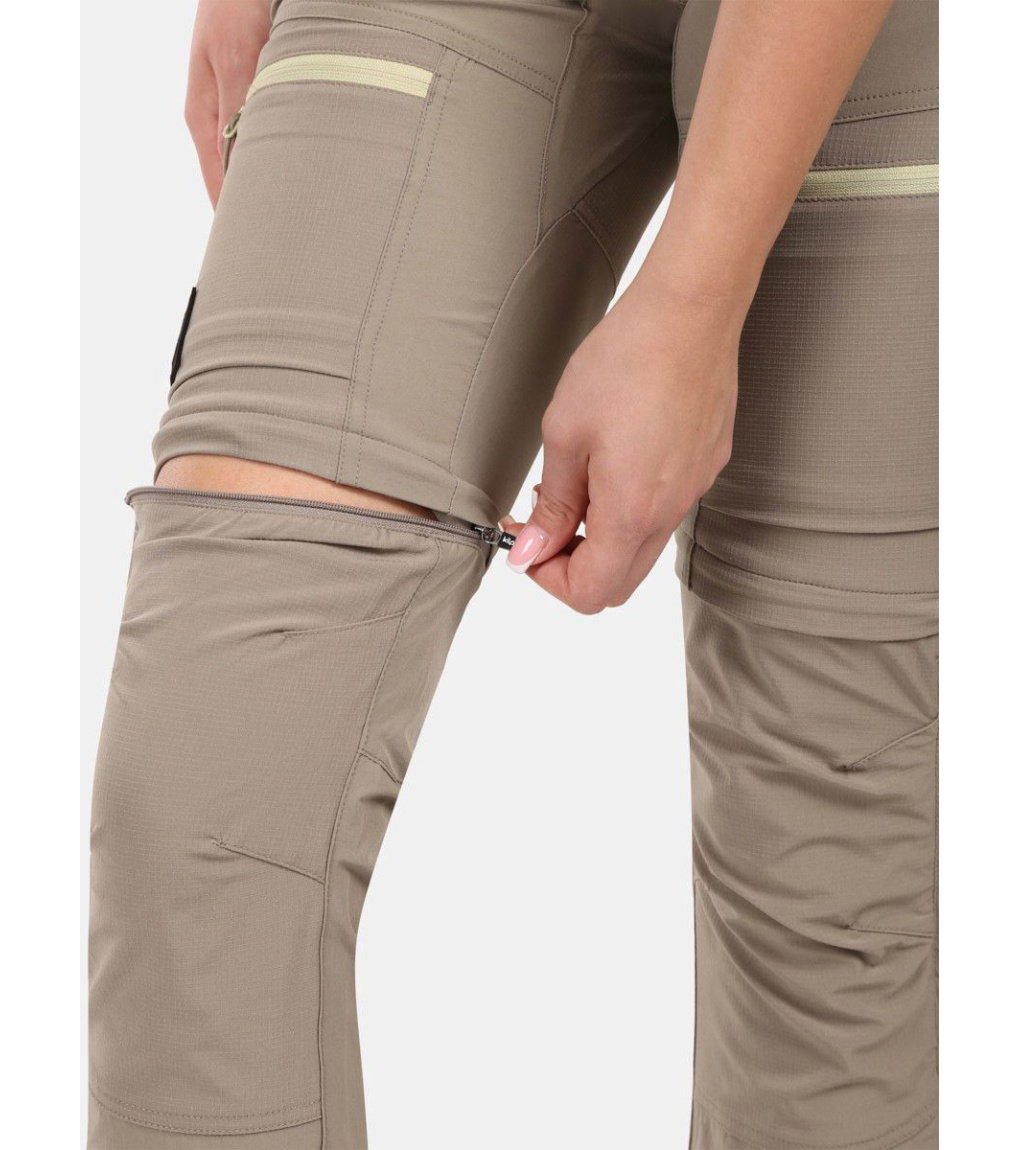 Wykończenie hydrofobowe zapewniające ochronę przed lekkim deszczem. Ochrona przed promieniowaniem UV zapewniająca bezpieczne poruszanie się na słońcu. Elastyczna w 4 kierunkach i trwała konstrukcja zapewniająca większą trwałość i swobodę ruchów. Regularny krój z elastyczną talią i szlufkami na pasek dla optymalnego komfortu. Odpinane nogawki z zamkiem błyskawicznym umożliwiają szybką zmianę spodni w szorty. Praktyczne kieszenie: dwie kieszenie główne i dwie kieszenie na nogawkach zapinane na suwak.
